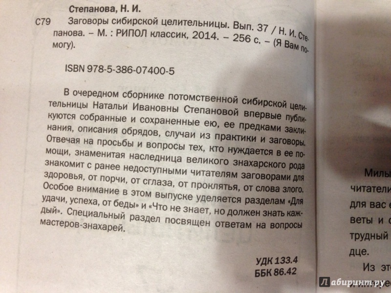 ОписаниеВ очередном сборнике потомственной сибирской целительницы Натальи Ивановны Степановой впервые публикуются собранные и сохраненные ею, ее предками советы и заклинания, описания обрядов и заговоры. Отвечая на просьбы и вопросы тех, кто нуждается в ее помощи, знаменитая наследница великого знахарского рода знакомит с ранее недоступными читателям заговорами для здоровья, от порчи, от сглаза, от проклятья, от слова злого. Особое внимание уделяется разделам "Для удачи, успеха, от беды" и "Что не знает, но должен знать каждый". Специальный раздел посвящен ответам на вопросы мастеров-знахарей.В очередном сборнике потомственной сибирской целительницы Натальи Ивановны Степановой впервые публикуются собранные и сохраненные ею, ее предками советы и заклинания, описания обрядов и заговоры. Отвечая на просьбы и вопросы тех, кто нуждается в ее помощи, знаменитая наследница великого знахарского рода знакомит с ранее недоступными читателям заговорами для здоровья, от порчи, от сглаза, от проклятья, от слова злого. Особое внимание уделяется разделам "Для удачи, успеха, от беды" и "Что не знает, но должен знать каждый". Специальный раздел посвящен ответам на вопросы мастеров-знахарей.