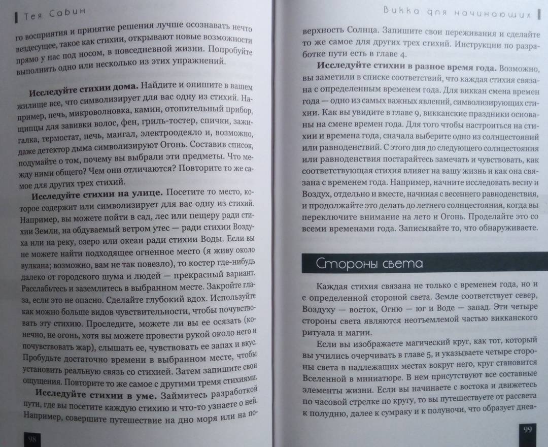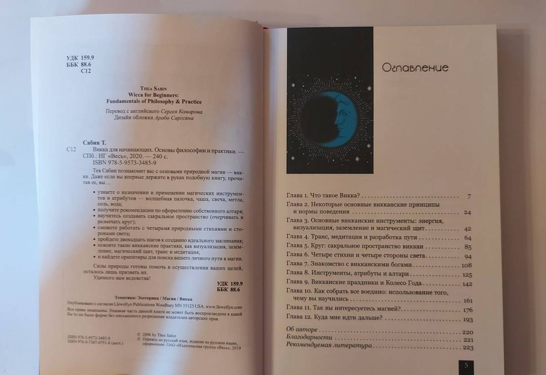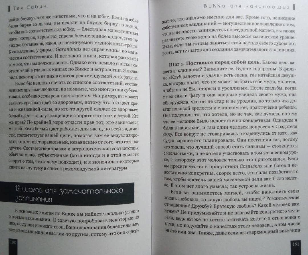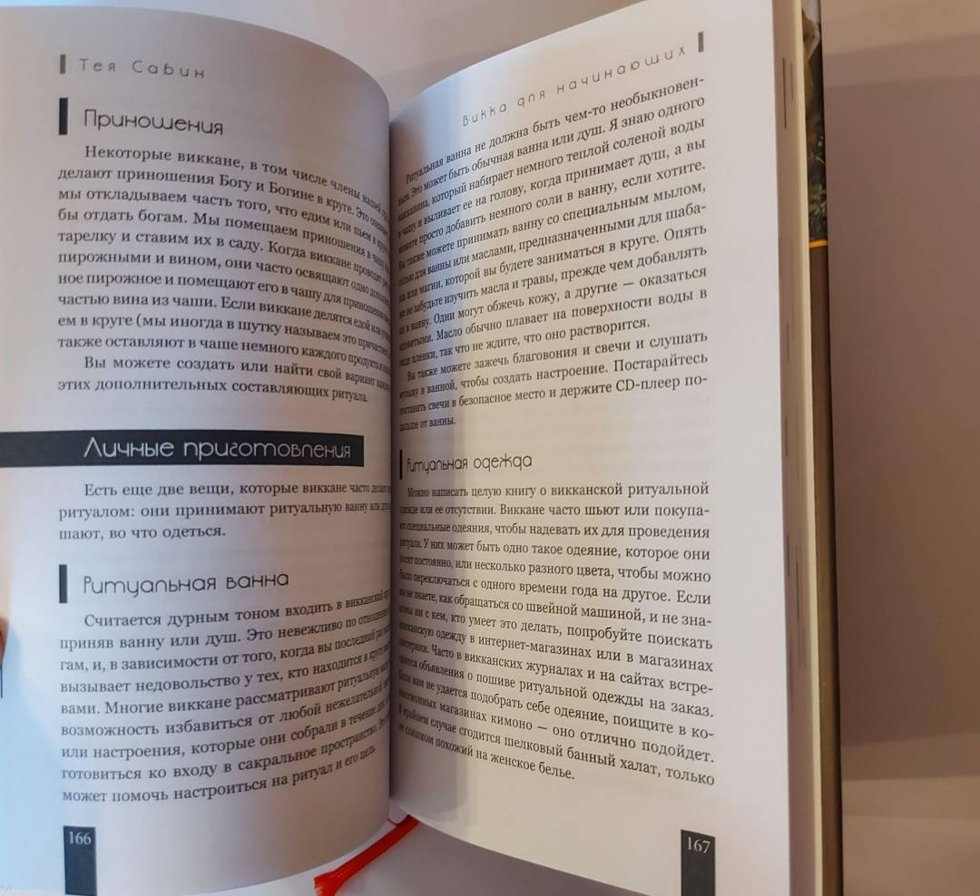 ОписаниеТея Сабин познакомит вас с основами природной магии - викки. Даже если вы впервые держите в руках подобную книгу, прочитав ее, вы…- узнаете о назначении и применении магических инструментов и атрибутов - волшебная палочка, чаша, свеча, метла, соль, вода;- получите рекомендации по оформлению собственного алтаря;- научитесь создавать сакральное пространство (очерчивать и размечать круг);- сможете работать с четырьмя природными стихиями и сторонами света;- пройдете двенадцать шагов к созданию идеального заклинания;- освоите такие викканские практики, как визуализация, заземление, магический щит, транс и медитация;- и найдете ориентиры для поиска вашего личного пути в магии.Силы природы готовы помочь в осуществлении ваших целей, осталось лишь призвать их.Удачного вам ведовства!Почему книгу стоит прочитатьКнига построена по такому принципу, что каждую технику можно применять и отдельно, и как часть более сложного ритуала. Если, к примеру, вы освоите заземление, эта практика, с одной стороны, будет помогать вам снимать стресс и избавляться от негативной энергии, а с другой - станет отличной подготовкой к любому магическому обряду.Таким образом вы сможете использовать новые навыки или сами по себе - для улучшения своего самочувствия, исцеления или получения экстрасенсорной информации. Или, освоив их все к концу чтения, перейти на следующую ступень - к созданию индивидуальных заклинаний и ритуалов для решения более масштабных задач. Все необходимые упражнения, рекомендации и примеры есть в книге!Для кого эта книгаКнига будет интересна и тем, кто впервые приступает к изучению викки, и опытным магам - всегда полезно "сверить часы" с тем, кто практикует не один десяток лет.Тея Сабин с юности была организатором различных викканских организаций, так что в основе книги не только личный опыт автора, но и ее единомышленников.Почему решили издатьВ своей книге Тея Сабин уделяет особое внимание вопросам викканской этики и поиска индивидуального пути в магии. Вы получите информацию обо всех ныне существующих направлениях викки - прямо с магической передовой. А также советы, которые помогут вам определиться, практиковать одному или примкнуть к какой-либо существующей организации (например, в Интернете) - и как не ошибиться в своем выборе.Мы думаем, что "гигиена", о которой пишет Тея Сабин, при выборе средств и союзников на пути к своим целям - важная тема в современном мире, в том числе и в мире магии. Мы хотим, чтобы ваша практика была не только эффективной, но и безопасной.Информация об автореТея Сабин - писательница, с юных лет практикующая викку. В настоящее время она и ее муж руководят ковеном британской традиции на туманном тихоокеанском побережье северо-запада США.СвернутьТея Сабин познакомит вас с основами природной магии - викки. Даже если вы впервые держите в руках подобную книгу, прочитав ее, вы…- узнаете о назначении и применении магических инструментов и атрибутов - волшебная палочка, чаша, свеча, метла, соль, вода;- получите рекомендации по оформлению собственного алтаря;- научитесь создавать сакральное пространство (очерчивать и размечать круг);- сможете работать с четырьмя природными стихиями и сторонами света;- пройдете двенадцать шагов к созданию идеального заклинания;- освоите такие викканские практики, как визуализация, 