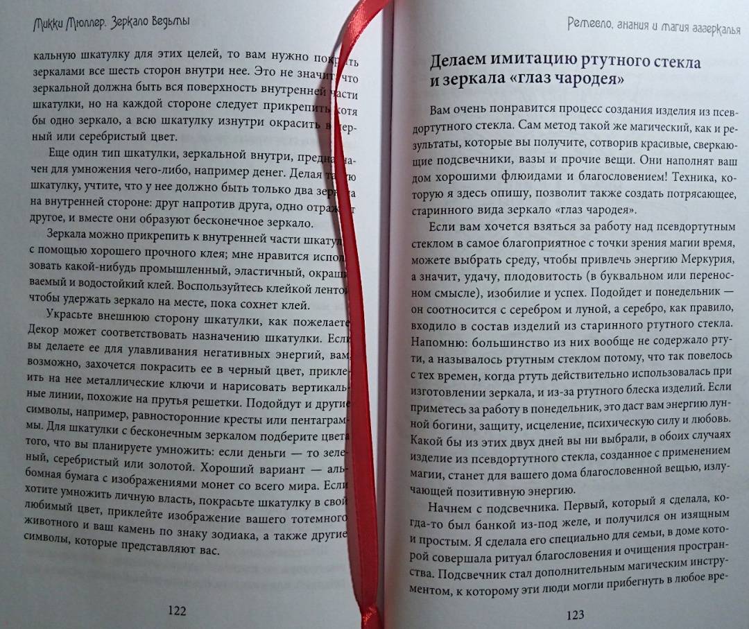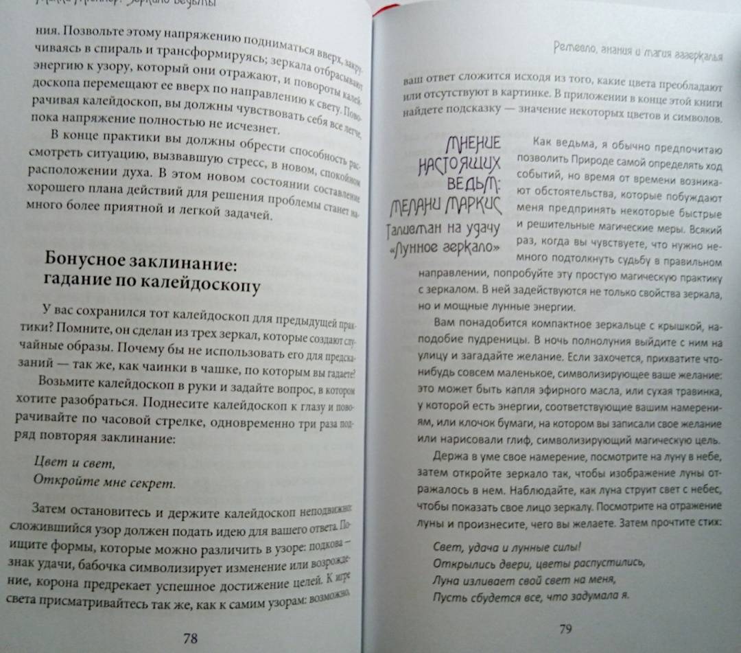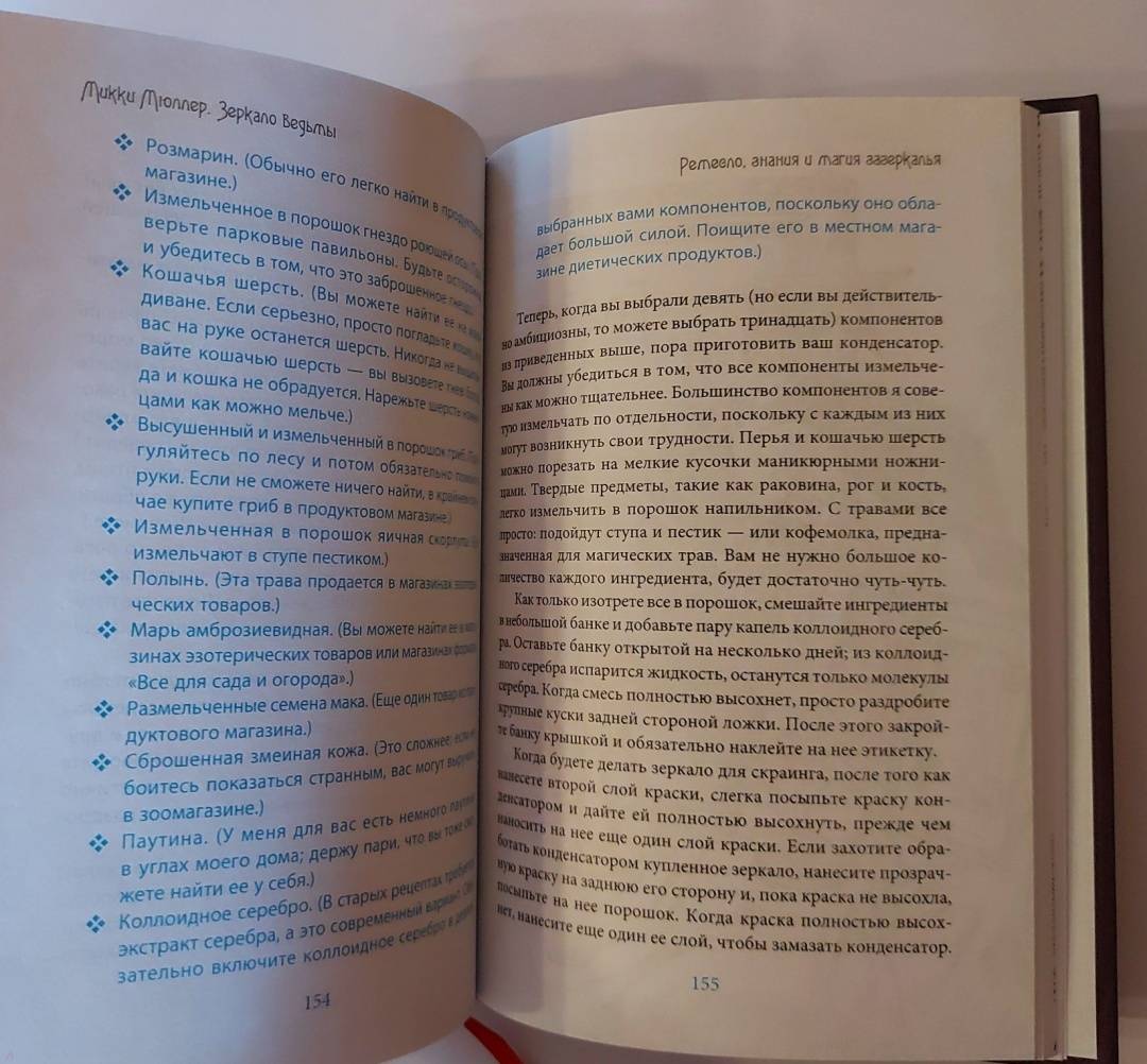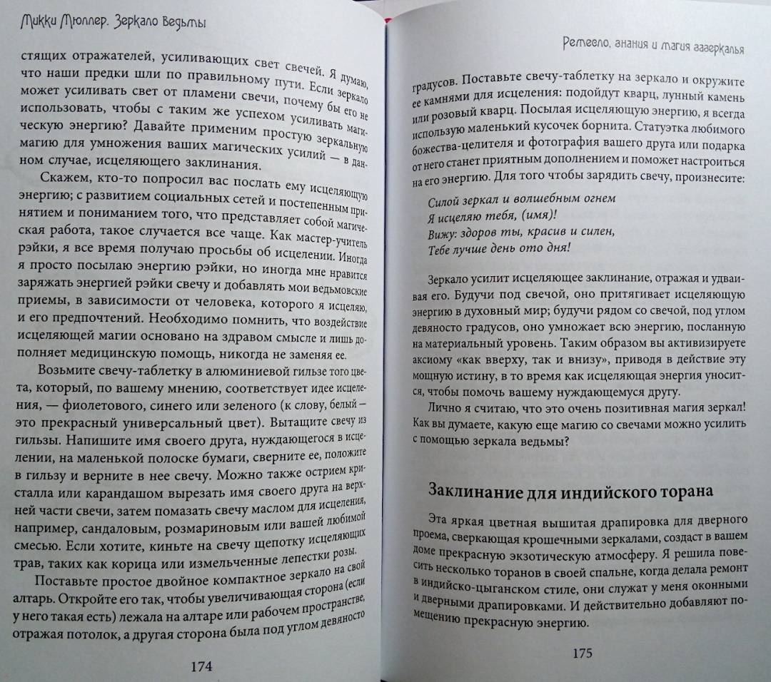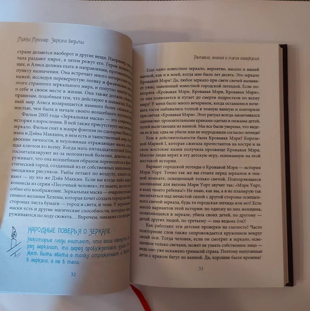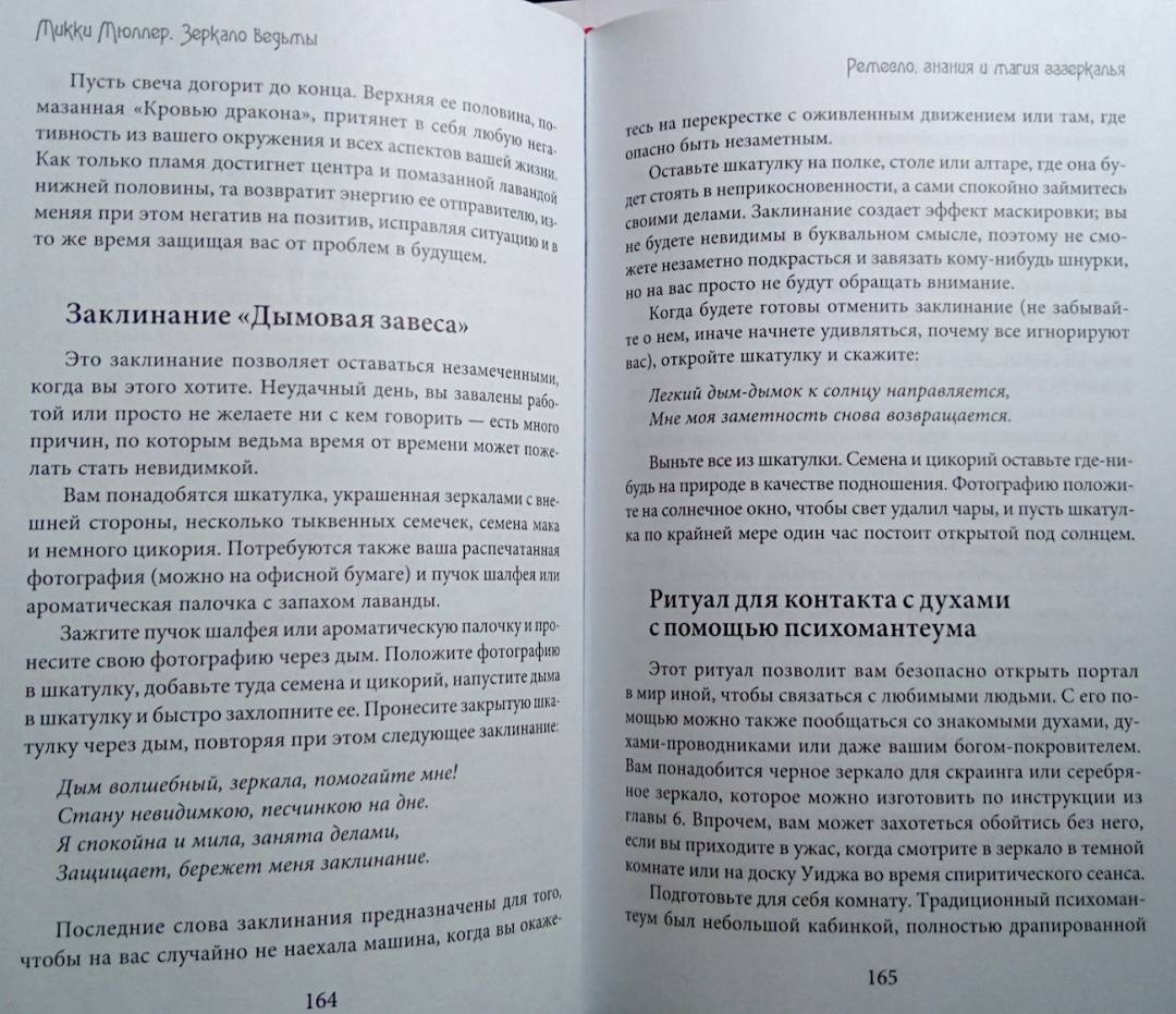 ОписаниеНи один повседневный предмет не окутан такой тайной, как зеркало. Наверное, каждый, разбив его, хоть раз задумывался - не ждет ли его теперь семь лет несчастий. А девушки, принадлежащие к самым разным культурам, знают: при соблюдении определенных условий в зеркале можно увидеть своего суженного. Правда это или вымысел?Из книги Микки Мюллер вы узнаете о магии зеркал абсолютно все - историю, традиции и современные способы использования. Автор рассказывает, как:- изготовить или выбрать идеальное зеркало (а также украшения с кусочками зеркала или зеркальную шкатулку) для достижения магических целей;- использовать травяные отвары для очищения зеркал, чтобы придавать им волшебные свойства - защита, рост уверенности в себе, помощь в любви и так далее;- накладывать заклинания - на исцеление, богатство, красоту и многое другое;- медитировать с помощью зеркал для установления связи с другими мирами.И конечно же, вы освоите скраинг - один из самых древних методов ясновидения и предсказания будущего - получение ответов на любые вопросы с помощью особой фокусировки взгляда на отражающей поверхности.О чем книгаИз первых двух глав вы узнаете историю магического использования зеркал в разных культурах, мифы и легенды, которые их окружали. А также какую роль волшебные зеркала сыграли в популярной культуре - от сказок братьев Гримм до сериала "Герои".В главах 3-6 автор подробно рассказывает о различных видах зеркал и о том, какие из них наиболее пригодны для тех или иных магических целей. Следуя советам, вы сможете найти или изготовить "зеркало ведьмы", соответствующие вашим индивидуальным запросам.А прочитав главы 7-9, вы сможете наделить его необходимыми магическими свойствами, чтобы оно начало работать, оберегая вас или ваш дом, усиливая вашу привлекательность или помогая общаться с духами.Почему книгу стоит прочитатьВы извлечете пользу из этой книги в любом случае.И если захотите освоить магию зеркал всерьез, научившись создавать различные магические зеркала своими руками - от черного зеркала и имитации ртутного стекла до психомантеума (зеркала для общения с духами).И если решите использовать полученные знания в повседневной жизни - в книге вы найдете заклинания и ритуалы, которые наделят магией и зеркальце в пудренице, и трюмо, и даже витрину магазина, в которой вы увидели свое отражение.Для кого эта книгаДля всех, кто хочет улучшить те или иные аспекты своей жизни с помощью магии зеркал - оставить тревожащие события прошлого позади, привлечь счастливую любовь или защититься от завистников.И тех, кто интересуется предсказательными практиками. Даже если вы дока в спиритической работе с зеркалами, Микки Мюллер откроет перед вами новые горизонты.Почему решили издатьКнигу "Зеркало ведьмы" высоко оценили не только читатели, но и специалисты, много лет работающие в области природной магии и предсказательных практик.Перед вами самое полное руководство по магии зазеркалья, которые поможет вам любое зеркало сделать волшебным. Даже автомобильное зеркало заднего вида. И это не шутка. Хотя автор и рассказывает о секретах своей магической работы с большим юмором.Информация об автореМикки Мюллер - писательница, художница и рукоположенный языческий священник. На протяжении многих лет она занимается природной магией, изучает языческие кельт
