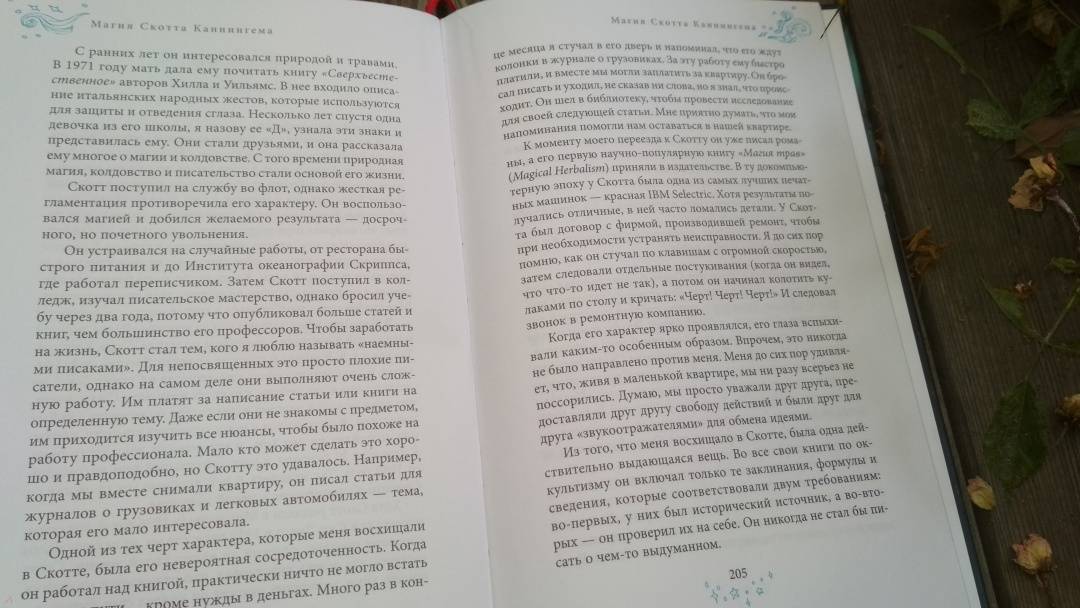 ОписаниеПеред вами - сборник заклинаний и ритуалов Скотта Каннингема, признанного эксперта по природной магии. Все приведенные статьи публикуются впервые: они были тщательно отобраны из ежегодного "Магического Альманаха" издательства "Llewellyn", который выходил в 90-е годы XX века.Статьи Каннингема охватывают разные темы: защитные ритуалы, лунные заклинания, саббаты, магия трав, работа с энергиями стихий. Кроме того, автор затрагивает и такие (казалось бы, далекие от магии) темы, как татуировка, выбор одежды, здоровье и многое другое. Вы узнаете, почему нельзя постоянно носить одежду одного и того же цвета, перья каких птиц лучше брать в качестве амулетов, чем полезна "магия майской росы" и как работают заговоры от зубной боли.Каннингем совершенствовал свои практики перед тем, как опубликовать их, экспериментируя с заклинаниями или инструментами для ритуалов, и писал с непревзойденной простотой и изяществом.О чем книгаПервая часть книги включает в себя статьи Скотта Каннингема.Большая часть статей - практическая. В них автор делится своим опытом, ритуалами. Чтобы освоить их, вам не потребуются ни тайные посвящения, ни магические предметы. Все инструменты (свечи, травы, кастрюли, сковородки, зеркала, веревки, ткани) наверняка есть у вас дома. Также здесь вы найдете готовые короткие заклинания для защиты дома, изменения погоды, избавления от дурной привычки, привлечения денег и т. д.Некоторые статьи - теоретические. Автор рассуждает о предрассудках, которых придерживаются многие начинающие маги. Хранить ли свою работу втайне или делиться ею? Стоит ли брать себе магическое имя? Нужны ли магу учителя?Вторая часть книги - это статьи Дональда Крейга "Магия Скотта Каннингема". Крейг был близким другом Каннингема, они вместе снимали жилье и писали статьи о колдовстве. И откровения Крейга помогают лучше узнать знаменитого мэтра Викки, получить представление о его методах работы и об удивительной магии, которую он подарил миру.Почему книгу стоит прочитатьВы узнаете много нового о магии и обретете вдохновение для личных практик. Кроме того, эта книга научит вас не бояться ответственности, которую несет с собой тайная мудрость, и смело экспериментировать с заклинаниями и ритуалами. Автор уверен: если ваша магия направлена на доброе дело, то ничего плохого не случится. А огромное количество заклинаний, рецептов, обрядов даст возможность подобрать для себя то, что лучше подходит.Для кого эта книгаКнига адресована широкому кругу читателей - Каннингем пишет просто, без сложных терминов, и его книги понятны даже тем, кто только начинает познавать магическое искусство. Особенно мы рекомендуем это издание практикам магии и викканам. И, конечно, почитателям творчества Скотта Каннингема.Почему решили издатьСкотт Каннингем оказал огромное влияние на жизнь тех, кто интересуется магией. Тысячи людей согласятся, что если бы не книги Каннингема, они не открыли бы для себя мир колдовства или не стали бы викканами. Автор пишет просто и понятно, и на страницах своих книг делится не только информацией, но и своими чувствами и видением.Поэтому решение о публикации сборника заклинаний Каннингема было принято практически без раздумий. Мы уверены, что наши читатели найдут в нем то необходимое знание, которое поможет сделать свою практику еще интереснее. И без про