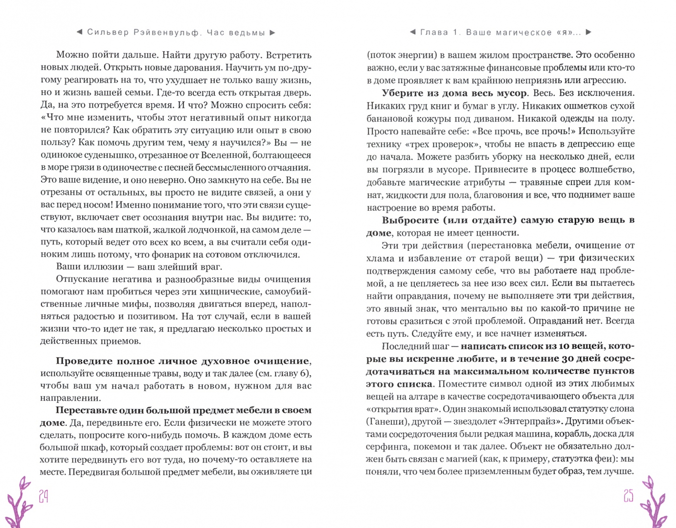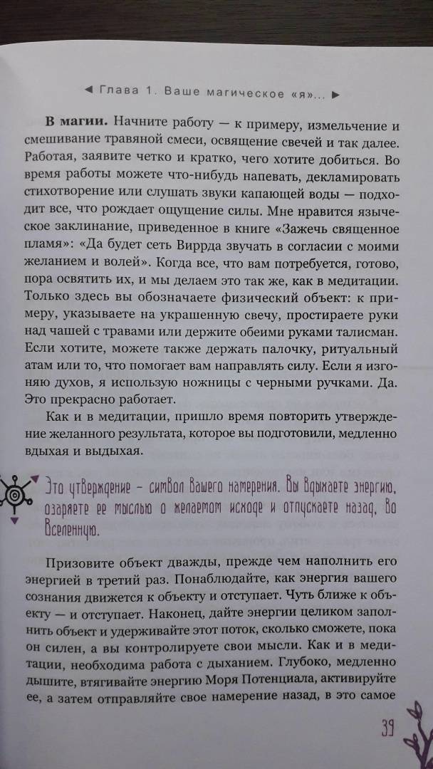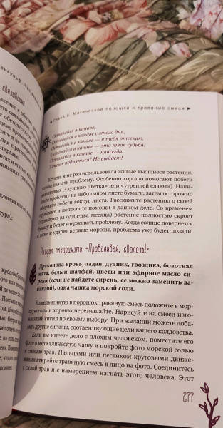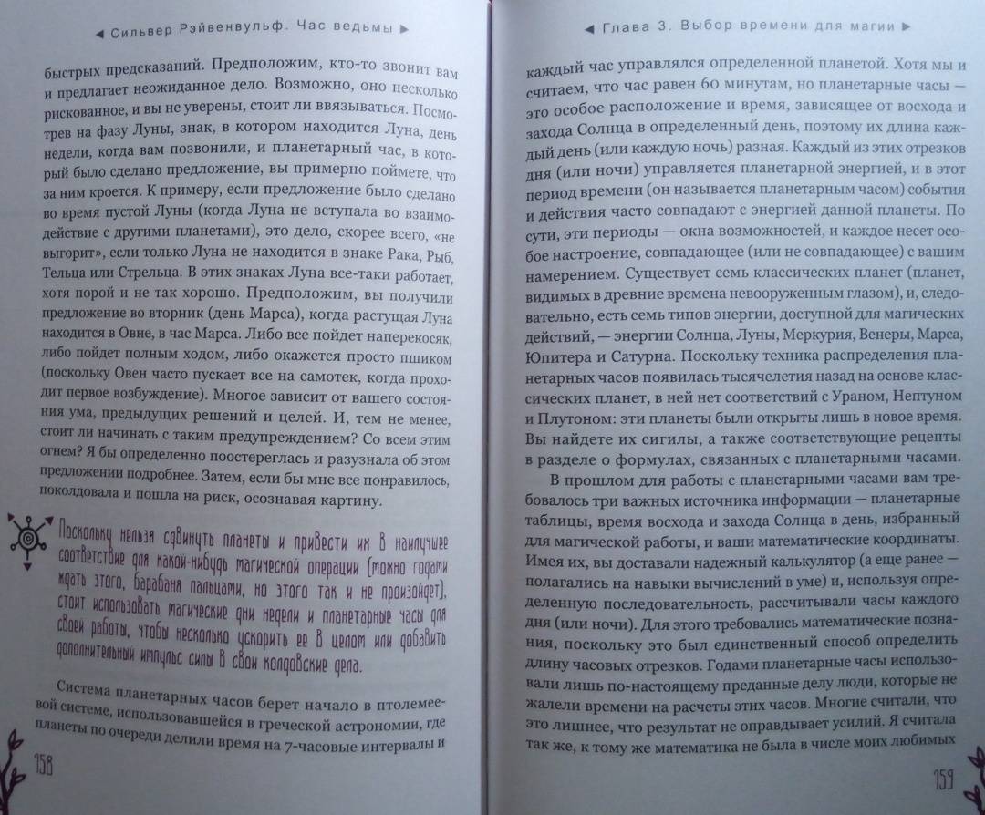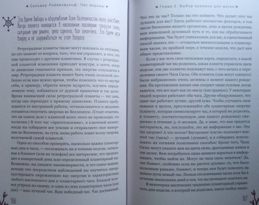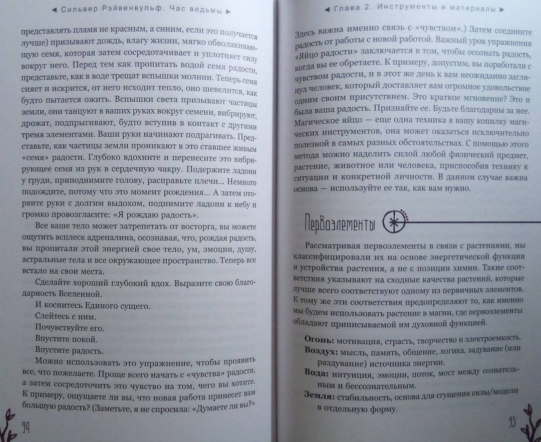 ОписаниеЧас ведьмы - это когда вы чувствуете: "Настало время для магии!" Вас переполняет уверенность, что вы с легкостью решите стоящую перед вами задачу и добьетесь желанного успеха. Для этого вам пригодятся советы известной ведьмы и составительницы растительных сборов со стажем - Сильвер Рэйвенвульф.Особенность книги Сильвер - уникальные авторские формулы травяных смесей и порошков и техники работы с ними. Вы узнаете, как:- изгнать из своей жизни то, чем вы недовольны, - с помощью "молота успеха";- открыть "врата справедливости" - если вы участвуете в судебной тяжбе;- использовать мудрость "белой совы" для принятия важных решений и силу "синей птицы" - для достижения семейного счастья;- избавиться от болезней, долгов, неблагоприятных обстоятельств и влияния чужой злой воли - благодаря "девяти плачущим сестрам".И конечно же, вас ждут различные рецепты защитных и любовных зелий и смесей для привлечения материального благополучия и удачи.Всего - более 100 травяных формул для любой, даже самой сложной, жизненной ситуации.О чем книгаВначале Сильвер Рэйвенвульф рассказывает, как подготовить свои ум и сознание к работе с энергиями и дарами Природы. Затем вы узнаете, какие инструменты и материалы вам понадобятся для составления травяных смесей: что, где и как - вырастить, собрать, купить, засушить, измельчить. И получите важные рекомендации, касающиеся выбора времени для составления формул и порошков и произнесения заклинаний - с учетом фаз Луны, дней недели и планетарных часов.Вы освоите общие принципы создания растительных сборов и техники работы с ними при проведении ритуалов.И сможете заняться магическим творчеством или воспользоваться одной из множества готовых авторских формул Сильвер Рэйвенвульф, приведенных в книге.Почему книгу стоит прочитать"Час ведьмы" - уникальное и наиболее полное руководство по самим основам ведовства, работе с травами. Автор дает практические советы, которые обычно, являясь плодами многолетней личной практики, не попадают в книги. Как усилить магические свойства свечи с помощью вощины. Какой наполнитель лучше выбрать, если вы хотите немного увеличить объем получившейся травяной смеси. Как найти подходящую кастрюлю для магических отваров в самом обычном хозяйственном магазине.Прочитав книгу, вы будете на сто процентов готовы к самостоятельной магической работе.Для кого эта книгаДля тех, кто интересуется виккой и хочет научиться составлять травяные сборы - для достижения своих магических целей.Почему решили издатьСильвер Рэйвенвульф - один из ведущих специалистов в области природной магии в мире, ее книги сыграли важнейшую роль в формировании современной викки. Однако с большинством из них российские читатели до недавнего времени могли ознакомиться лишь на языке оригинала. Мы рады восполнить этот пробел."Час ведьмы" - золотой стандарт книг по ведовству. Книга написана практично, легко и занимательно, в ней много личных наблюдений, которые будут полезны любому магу - и начинающему, и опытному.Информация об автореСильвер Рейвенвульф - писательница, художник, кукольный и свечной мастер, фотограф и предприниматель. Она руководитель Клана Чернолесья, викканской организации, состоящей более чем из шестидесяти ковенов в тридцати штатах и трех международных групп. Сильвер в счастливом браке тридцать пя