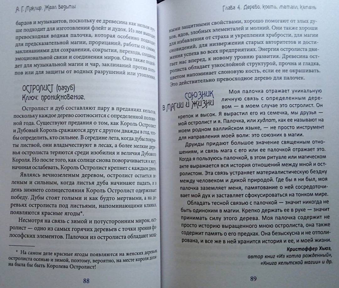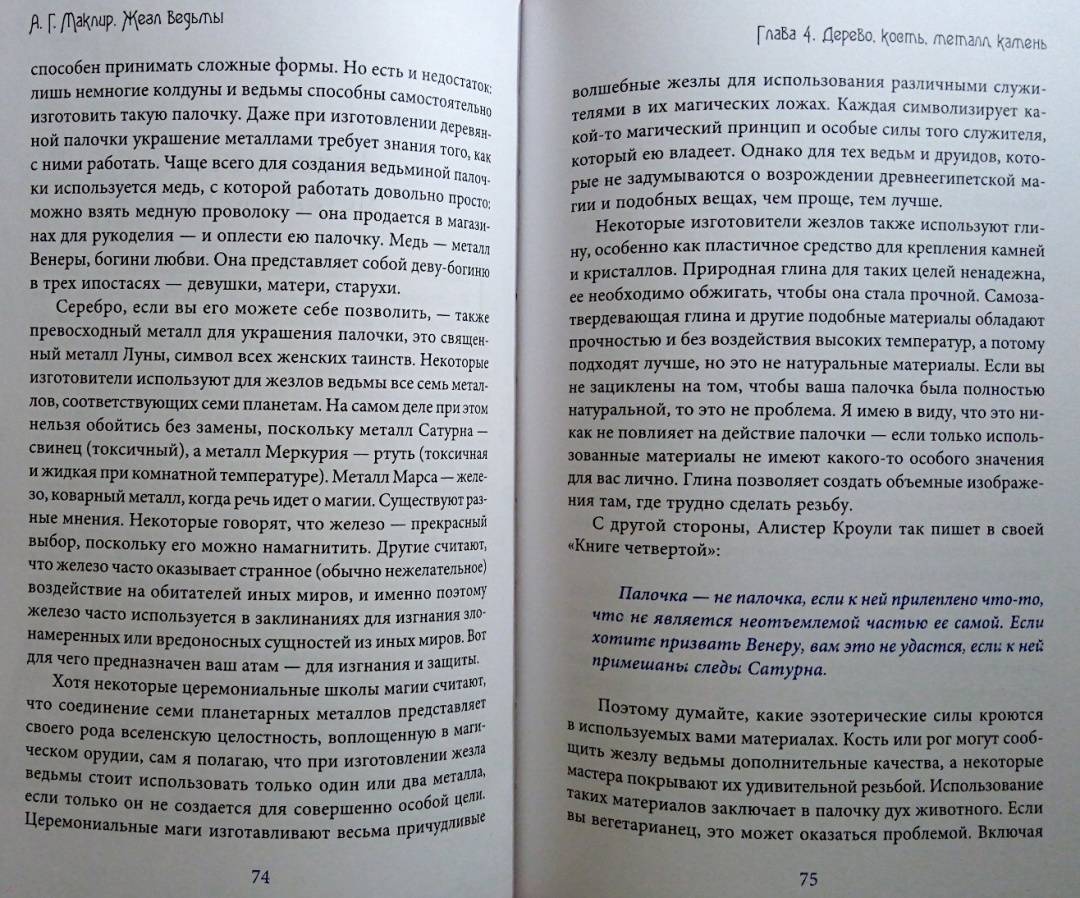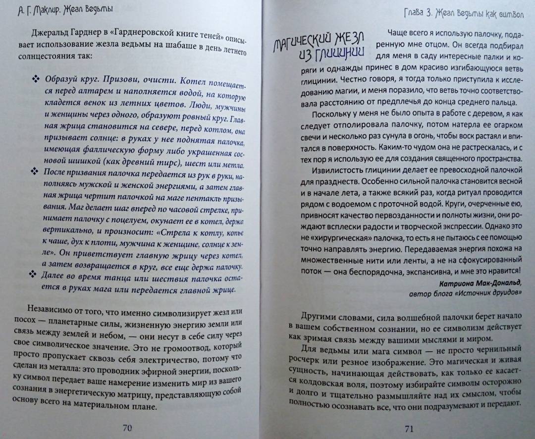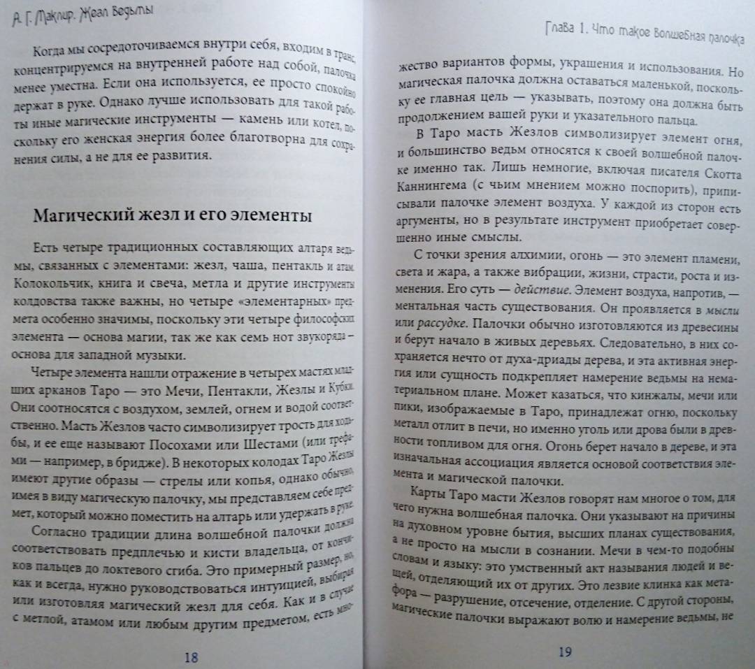 ОписаниеСегодня образ волшебной палочки стал неотъемлемой частью массовой культуры. Она появляется в книгах и в фильмах гораздо чаще, чем любой другой предмет магического арсенала. Как же нам отделить правду об этом инструменте от неуемной фантазии писателей и кинематографистов? Об этом вы узнаете из книги Альфериана Гвидиона Маклира, мастера по изготовлению волшебных палочек - или жезлов ведьмы, как их обычно называют те, кто их действительно использует.Прочитав книгу, вы сможете изготовить собственную волшебную палочку - в зависимости от своих целей - и наложить на нее чары. А также получите необходимые знания, чтобы применять жезл ведьмы во время проведения ритуалов, праздников круга года и произнесения различных заклинаний - для направления намерения и магических посланий, зарядки объектов и очерчивания защитных кругов.Переворачивайте страницу - и добро пожаловать в мир практической магии! Крибли-крабле-бумс!О чем книгаВ начале книги Альфериан Гвидион Маклир рассказывает о том, что из себя представляет жезл ведьмы и какое отражение он нашел в мифах, легендах и современных литературе и кинематографе. Особое внимание уделяется наиболее явным искажениям, допущенным авторами романов или создателями фильмов в отношении волшебной палочки.В следующих главах Маклир описывает устройство жезла ведьма, а также магические свойства деревьев и камней, применяемых для ее изготовления. Вы узнаете, как использовать жезл ведьмы с помощью жестов и рисования геометрических фигур, рун и магических символов. И познакомитесь с общими правилами применения волшебной палочки для усиления различных заклинаний.В заключение вас ждет рассказ об особых жезлах для различных церемоний и сезонных празднеств.Приложение содержит таблицы "Деревья и их магические свойства", "Магические силы камней и металлов" и "Символизм животных". Эти сведения пригодятся вам для самостоятельного изготовления вашей волшебной палочки.Для кого эта книгаЭта книга для тех, кто хочет узнать историю волшебной палочки и разгадать заложенную в ней символику. А также для практикующих ведьм и колдунов, она найдут в книге инструкции, заклинания и вдохновение для работы с магическим жезлом.А также для всех, кто с детства мечтал иметь волшебную палочку!Почему решили издатьКнига Альфериана Гвидиона Маклира - единственное полное исследование самого известного, но от этого не менее загадочного, магического артефакта, изданное на русском языке. И что самое важное - это практическое руководство. Воспользуйтесь советами автора - и ваша магическая палочка станет не просто ритуальным орудием, а постоянным спутником, источником силы и духом-фамильяром.Информация об автореАльфериан Гвидион Маклир - друидическое имя доктора Джеймса Мертенса, мастера по изготовлению волшебных палочек, чародея и писателя. Он член Ордена бардов, оватов и друидов - крупнейшего международного ордена британских друидов.Маклир создает жезлы ведьмы для клиентов со всего мира.Он живет в полной гармонии с женой и дочерью, фамильяром Минервой и большой коллекцией удивительных шляп.СвернутьСегодня образ волшебной палочки стал неотъемлемой частью массовой культуры. Она появляется в книгах и в фильмах гораздо чаще, чем любой другой предмет магического арсенала. Как же нам отделить правду об этом инстру