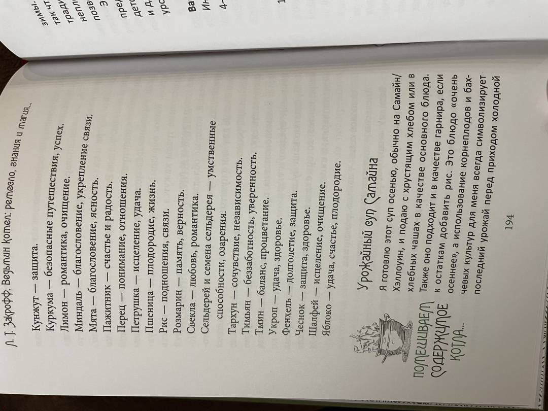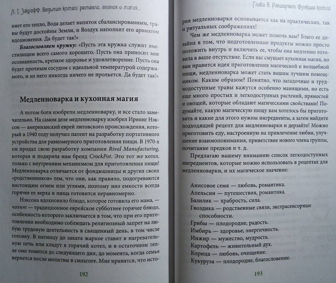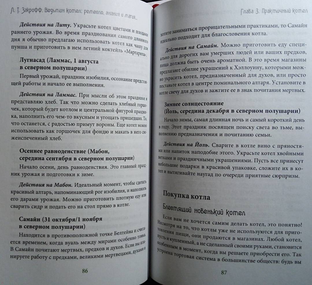 ОписаниеМы окунемся в историю ведьминого котла и связанную с ним мифологию. Я расскажу о множестве нюансов, которые нужно учитывать при выборе собственного котла (или даже нескольких!), а также о том, как купить новый, сделать его самостоятельно или приспособить под котел что-то уже ненужное. Мы выясним, как пользоваться котлом: благословить его и применять в ритуалах, как с его помощью колдовать и творить кухонную магию, предсказывать будущее, а также, как ухаживать за котлом, чтобы он прослужил вам многие годы. Мы обратимся к старинной магии и будем работать с ее методами по-новому с необычными и нетрадиционными котлами, которые наверняка есть у вас дома. Вы узнаете, что этот чудесный инструмент обладает безграничными возможностями и может стать вашим любимым!Лаура Темпест ЗакроффМы окунемся в историю ведьминого котла и связанную с ним мифологию. Я расскажу о множестве нюансов, которые нужно учитывать при выборе собственного котла (или даже нескольких!), а также о том, как купить новый, сделать его самостоятельно или приспособить под котел что-то уже ненужное. Мы выясним, как пользоваться котлом: благословить его и применять в ритуалах, как с его помощью колдовать и творить кухонную магию, предсказывать будущее, а также, как ухаживать за котлом, чтобы он прослужил вам многие годы. Мы обратимся к старинной магии и будем работать с ее методами по-новому с необычными и нетрадиционными котлами, которые наверняка есть у вас дома. Вы узнаете, что этот чудесный инструмент обладает безграничными возможностями и может стать вашим любимым!Лаура Темпест Закрофф