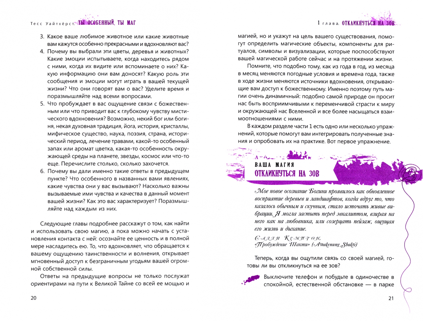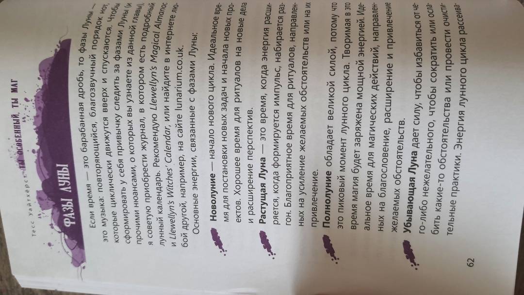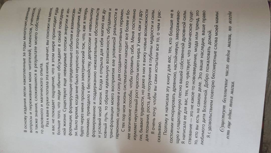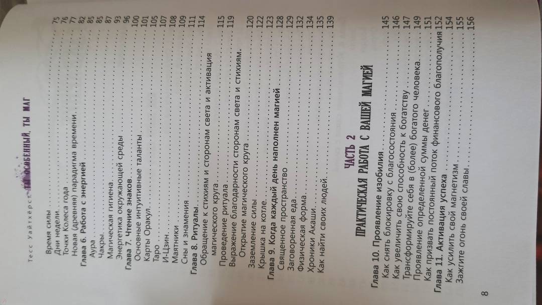 ОписаниеЕсли вы никогда не думали о себе как о маге, самое время попробовать узнать о себе больше. С помощью этой книги вы сможете пробудить скрытую в вас силу и поймете, как благодаря магии наполнить жизнь позитивом, гармонией и счастьем.Первая часть книги знакомит с теорией магии. Вы узнаете об исходной энергии Вселенной, заключенной в пяти стихиях, о том, как она проявляется и как с ней работать. Поймете, как повысить эффективность своих действий, учитывая влияние Луны, дней недели, времени суток, положения планет и т.п. Научитесь обустраивать алтарь, сакральное место силы, и выбирать ингредиенты для проведения ритуалов и заклинаний. Также автор рассказывает о магической этике, ответственности за свои действия и важности следования принципу "не навреди".Во второй части представлено множество ритуалов на разные случаи жизни - в сфере любви и отношений, личностного роста, финансов и карьеры, домашнего хозяйства и др. Автор подробно описывает, что и когда делать, какие предметы понадобятся, что за слова (заклинания) нужно произносить. Вы просто следуете инструкциям, подключаете свою магическую силу и... ваша жизнь улучшается!О чем книгаВы узнаете, как раскрыть в себе способность к магии и научиться с помощью этой силы менять свою жизнь. Тесс Уайтхёрст, маг с опытом более 20 лет, обучила этому искусству множество людей. Она доступно и понятно объясняет, как распознать вашу магическую природу и стать тем, кем вы являетесь по праву рождения: магом, который чувствует энергии окружающего мира и свою связь со Вселенной. Благодаря этой связи, а также с помощью личной внутренней силы и намерения маги воздействуют на реальность вокруг.Книга состоит из двух частей. В первой части книги вы познакомитесь с историей магии, узнаете принципы ее работы и определите, какое магическое направление подходит именно вам (природная магия, магия стихий, работа с тонкими энергиями). Базовые теоретические знания, представленные в этой части, помогут уверенно и осознанно заниматься практической магией - проводить ритуалы, читать заклинания, изготавливать талисманы.Практике магического искусства посвящена вторая часть книги. Автор приводит простые в исполнении ритуалы, обряды и заклинания на все случаи жизни. Благодаря ним вы сможете:- увеличить свою магическую силу и способность воздействовать на окружающее пространство;- усилить свой магнетизм и харизму, проявить истинного себя и понять, что вас вдохновляет и приносит радость;- снять денежный блок и войти в поток изобилия, найти идеальную для вас работу, трансформировать себя в более богатого человека;- изгнать негатив из дома, офиса или другого места, где возможно, сохранился энергетический след других людей или присутствуют дурные вибрации;- сделать так, чтобы агрессор не смог причинить вам физический или энергетический вред;- благословить и защитить свою семью, близких людей, питомцев;- привнести романтику в любовные отношения, исцелиться после разрыва или призвать новую любовь.Почему книгу стоит прочитатьМагами могут стать не только избранные. Человек, как часть Вселенной, энергетически связан со всем, что есть в мире, а значит, он может и влиять на этот мир через свои поступки! Если у вас есть искреннее желание действовать, вы знаете, как устроена невидимая сторона реальности, и обладаете особыми 
