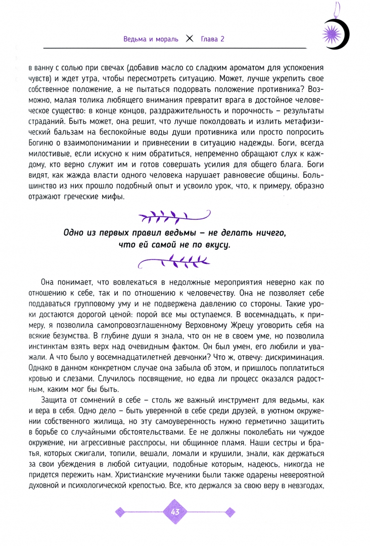 ОписаниеОсновной принцип существования ведьмы - творить собственную магию. Ведьма не сидит и не ждет, когда мир преподнесет ей исполненные мечты на блюдечке. Она действует и пытается воплотить свои сокровенные желания, даже если это кажется невозможным.В этом всеобъемлющем путеводителе вы найдете исчерпывающую информацию о том, что делает ведьму ведьмой, какое место в ее жизни занимают любовь, секс, деньги, вопросы общественной морали и здоровья, кармического долга и смерти.Книга предлагает уникальные магические практики для освоения азов колдовского Ремесла. Вы научитесь по желанию изменять собственное эмоциональное состояние и накладывать чары (защитные, для привлекательности, выздоровления, обретения силы, благополучия и др.). Узнаете, как отмечать саббаты и эсбаты, как гадать на Таро и рунах. Познакомитесь с биографией знаменитых магов прошлых веков и пантеоном языческих божеств. Испытаете самые разные колдовские техники и методы: астральную магию, конус силы, перенос энергий, призывание, симпатическую магию, свечную и многое другое.Цель этой книги - быть полезной для ведьмы независимо от ее личных предпочтений и стать для ищущих проводником в мир магии и волшебства.СвернутьОсновной принцип существования ведьмы - творить собственную магию. Ведьма не сидит и не ждет, когда мир преподнесет ей исполненные мечты на блюдечке. Она действует и пытается воплотить свои сокровенные желания, даже если это кажется невозможным.В этом всеобъемлющем путеводителе вы найдете исчерпывающую информацию о том, что делает ведьму ведьмой, какое место в ее жизни занимают любовь, секс, деньги, вопросы общественной морали и здоровья, кармического долга и смерти.Книга предлагает уникальные магические практики для освоения азов колдовского Ремесла. Вы научитесь по желанию изменять собственное эмоциональное состояние и накладывать чары (защитные, для привлекательности, выздоровления, обретения силы, благополучия и др.). Узнаете, как отмечать саббаты и эсбаты, как гадать на Таро и рунах. Познакомитесь с биографией знаменитых магов прошлых веков и пантеоном языческих божеств. Испытаете самые разные колдовские техники и методы: астральную магию, конус силы, перенос энергий, призывание, симпатическую магию, свечную и многое другое.Цель этой книги - быть полезной для ведьмы независимо от ее личных предпочтений и стать для ищущих проводником в мир магии и волшебства.СвернутьСвернуть