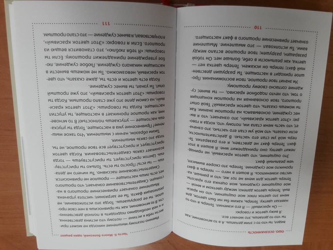 Описание«Осознанность» — загадочное и таинственное понятие, которое упоминается во многих духовных учениях. Но что такое осознанность и почему она важна не только в духовном развитии, но и в обычной жизни?Каждый из вас переживал мгновения осознанности — когда время будто останавливается, и вы осознаете каждое движение, каждый звук, каждую мысль... Это состояние не просто «приятно» — оно может принести вам невероятную пользу: помочь реализовать ваши истинные желания, исцелиться, обрести мудрость для преодоления трудностей и принятия решений. В данной книге Ошо дает специальные техники на развитие осознанности и объясняет, как применять их наилучшим для себя образом. Работайте, говорите, ешьте — делайте все с полной осознанностью, и вы увидите в себе огромную перемену. Сам факт, что вы осознано живете, изменит все ваши действия.О чем книгаВ этой книге собраны выдержки из бесед Ошо, в которых он учит более внимательной, собранной и медитативной жизни.По словам великих мастеров, большинство людей потеряли осознанность — они движутся по жизни как сомнамбулы, никогда не присутствуя в том, что делают, никогда полностью не становясь бдительными к окружающему. В этой книге Ошо учит вас быть осознанными во всем, что вы делаете, и первый шаг в осознанности — стать очень внимательным к своему телу. Вы освоите такие техники осознанности, как «Випассана», «Осознанный сон», «Невидимое прикосновение» и убедитесь, что осознанность — это не только полезный навык в современной жизни, но и интересный процесс, позволяющий вам узнать о себе нечто новое. Как только вам удастся понять, что же такое осознанность и зачем она нужна, вы найдете ключ к тому, чтобы быть хозяевами самих себя практически в каждой области вашей жизни.Почему книгу стоит прочитатьС помощью этой книги вы сможете обуздать строптивый характер осознанности и начать относиться более внимательно ко всему, что с вами происходит. Вы изучите специальные техники, которые помогут вам развить в себе осознанность, и мало-помалу станете присутствовать в каждом жесте, в каждом движении. По мере того как вы будете становиться более осознанными, начнет происходить чудо: вы начнете чувствовать, что носите в теле многие напряжения, которых никогда раньше не осознавали, и избавитесь от них. Многие ненужные действия, которые вы совершали раньше, просто исчезнут из вашей жизни, а ваше тело станет более расслабленным, более сонастроенным, в нем воцарится глубокий мир.Для кого эта книга- для тех, кто хочет «проснуться» и начать развивать в себе качество осознанности;- для тех, кто хочет встать на путь саморазвития и начать менять свою жизнь к лучшему;- для тех, кто хочет быстрее освоить разные медитационные техники (осознанность — необходимое условие для вхождение в состояние медитации);- для тех, кто любит книги Ошо.Почему решили издатьКнига Ошо «Осознанность» для современного человека — как спасательный круг в сильный шторм. Давайте признаемся себе честно: все мы в 95% внезапных ситуаций начинаем действовать по шаблону или на автопилоте, не особо задумываясь, что у нашего поведения есть и другие варианты. Ошо доказывает: другие варианты не только есть — ими необходимо пользоваться, чтобы не оказаться в «застоявшемся» болоте, а продолжать развиваться, расти и учиться на своих ошибках.Информац