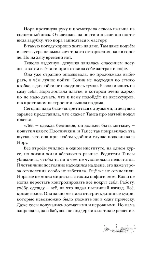 ОписаниеНовый роман в жанре фольклорного фэнтези с детективной линией от автора нашумевшей «Станции Лихо». Нора жила обычной студенческой жизнью: встречалась с друзьями, сдавала экзамены, помогала своей бабушке. Но однажды девушка начала видеть странные вещи — например, жуткую черную тень в плаще, висящие в воздухе старые наличники, рыжего говорящего кота... И мертвые исковерканные тела. Вскоре Нора понимает свою особенность: она — столетница. Душа, которая прожила сто лет в Ладном и сто лет в Явном мире. Вместе с Брютом, заместителем начальника Стражи, ей предстоит разобраться, кто жаждет уничтожить Ладный мир. Но за это знание им предстоит заплатить поистине страшную цену.