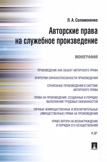 Лилия Соломоненко: Авторские права на служебное произведение. Монография