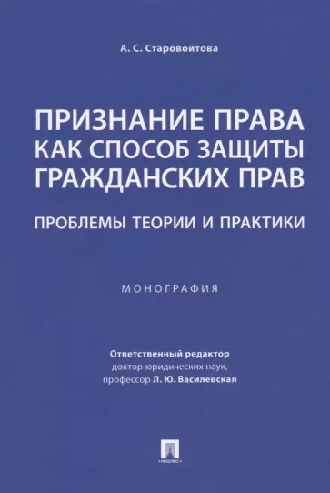 Анна Старовойтова: Признание права как способ защиты гражданских прав. Проблемы теории и практики. Монография