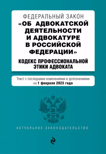 Федеральный Закон "Об адвокатской деятельности и адвокатуре в Российской Федерации" на 01.02.23 г.