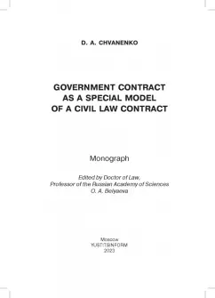 Дмитрий Чваненко: Государственный контракт как особая модель гражданско-правового договора. Монография
