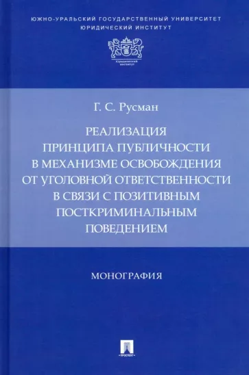ОписаниеРеализация принципа публичности в механизме освобождения от уголовной ответственности в связи с позитивным посткриминальным поведением. Монография.В работе рассматривается роль государства в урегулировании уголовно-правового конфликта. Исследуются вопросы освобождения от уголовной ответственности как поощрительной формы уголовного судопроизводства с позиции реализации государством принципа публичности. Отдельное внимание уделяется особенностями возникающим в правоприменительной практике проблемам реализации механизма освобождения от уголовной ответственности в связи с позитивным посткриминальным поведением.Законодательство приведено по состоянию на 20 ноября 2022 г.Для научных работников, преподавателей, аспирантов и студентов юридических вузов, а также практикующих юристов.