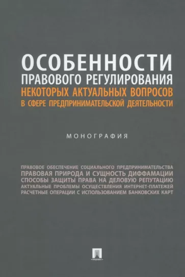 ОписаниеВ монографии анализируются некоторые актуальные вопросы, возникающие в процессе осуществления предпринимательской деятельности, такие как правовое обеспечение российского социального предпринимательства, гражданско-правовое регулирование деловой репутации юридических лиц и их защита в Российской Федерации.Рассматриваются отдельные актуальные проблемы осуществления интернет-платежей в Российской Федерации и особенности гражданско-правового регулирования расчетных операций с использованием банковских карт.Законодательство приведено по состоянию на 30 декабря 2022 г.Монография предназначена ученым-юристам, практическим работникам, преподавателям, аспирантам, студентам.