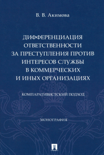 ОписаниеДифференциация ответственности за преступления против интересов службы в коммерческих и иных организациях: компаративистский подход.В монографии концептуально обоснована идея о целесообразности повышения качества дифференциации ответственности за преступления против интересов службы в коммерческих и иных организациях, представлены законопроектные модели ее воплощения в действующее российское уголовное законодательство.Выявлены и охарактеризованы типичные модели формирования системы служебных преступлений в российском уголовном законодательстве на различных этапах становления и развития отечественной государственности.Дифференциация ответственности за преступления против интересов службы в коммерческих и иных организациях: компаративистский подход.В монографии концептуально обоснована идея о целесообразности повышения качества дифференциации ответственности за преступления против интересов службы в коммерческих и иных организациях, представлены законопроектные модели ее воплощения в действующее российское уголовное законодательство.Выявлены и охарактеризованы типичные модели формирования системы служебных преступлений в российском уголовном законодательстве на различных этапах становления и развития отечественной государственности.