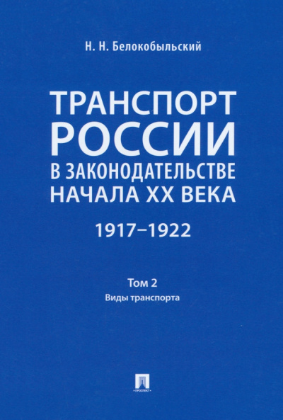 Николай Белокобыльский: Транспорт России в законодательстве начала XX века. 1917–1922. Том 2. Виды транспорта