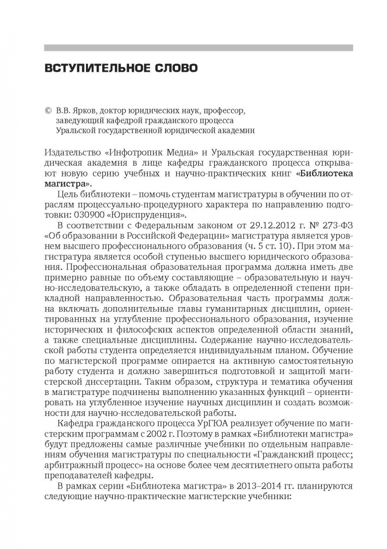ОписаниеУчебное издание рекомендовано Учебно-методическим советом по образованию в области юриспруденции УФО на базе ФГБОУ высшего профессионального образования "Уральская государственная юридическая академия" для студентов высших учебных заведений, обучающихся по программе "Гражданский процесс (судебная деятельность)" (в рамках направления подготовки: 030900 Юриспруденция ФГОС ВПО по направлению подготовки "Юриспруденция" (квалификация (степень)) "магистр".Издание входит в новую серию учебных и научно-практических книг "Библиотека магистра", подготовленных по программе, ориентированной на углубление профессионального юридического образования.Рассматриваются основные направления совершенствования законодательства о нотариате, в том числе изменения в ФЗ об ООО, нотариат и посредничество; проблемы модернизации современного нотариата, ее приоритеты и стратегии, информационные технологии в нотариальной практике и др. Издание включает список рекомендуемой литературы; перечень нормативно-правовых актов и судебной практики; рекомендуемые темы магистерских диссертаций.Предназначено для специализированной подготовки преподавателей/студентов, обучающих/обучающихся по магистерским программам высшего юридического образования.СвернутьУчебное издание рекомендовано Учебно-методическим советом по образованию в области юриспруденции УФО на базе ФГБОУ высшего профессионального образования "Уральская государственная юридическая академия" для студентов высших учебных заведений, обучающихся по программе "Гражданский процесс (судебная деятельность)" (в рамках направления подготовки: 030900 Юриспруденция ФГОС ВПО по направлению подготовки "Юриспруденция" (квалификация (степень)) "магистр".Издание входит в новую серию учебных и научно-практических книг "Библиотека магистра", подготовленных по программе, ориентированной на углубление профессионального юридического образования.Рассматриваются основные направления совершенствования законодательства о нотариате, в том числе изменения в ФЗ об ООО, нотариат и посредничество; проблемы модернизации современного нотариата, ее приоритеты и стратегии, информационные технологии в нотариальной практике и др. Издание включает список рекомендуемой литературы; перечень нормативно-правовых актов и судебной практики; рекомендуемые темы магистерских диссертаций.Предназначено для специализированной подготовки преподавателей/студентов, обучающих/обучающихся по магистерским программам высшего юридического образования.СвернутьСвернуть