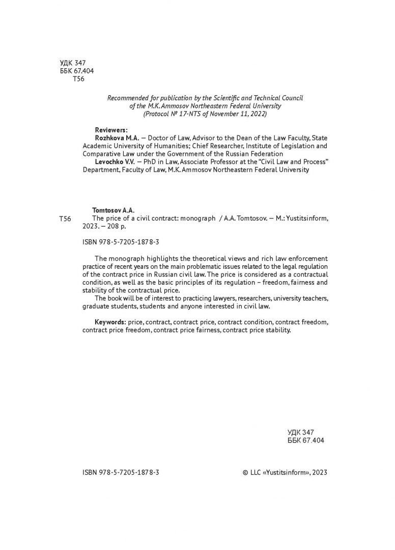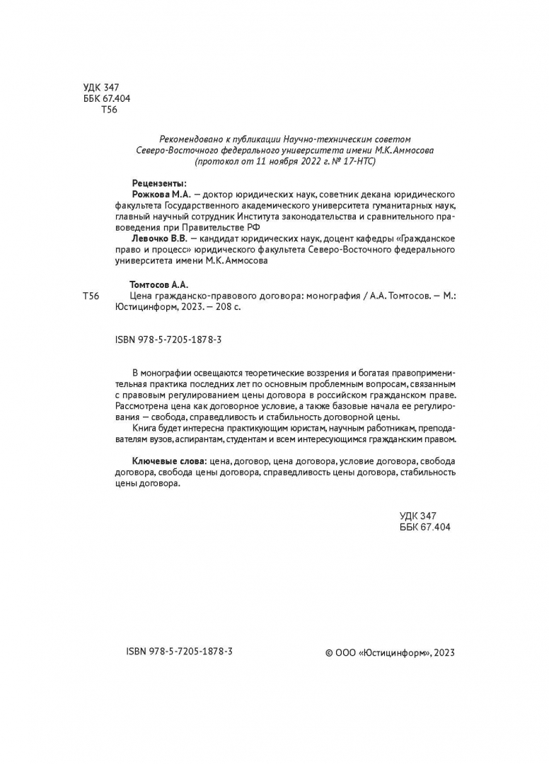 Афанасий Томтосов: Цена гражданско-правового договора. Монография