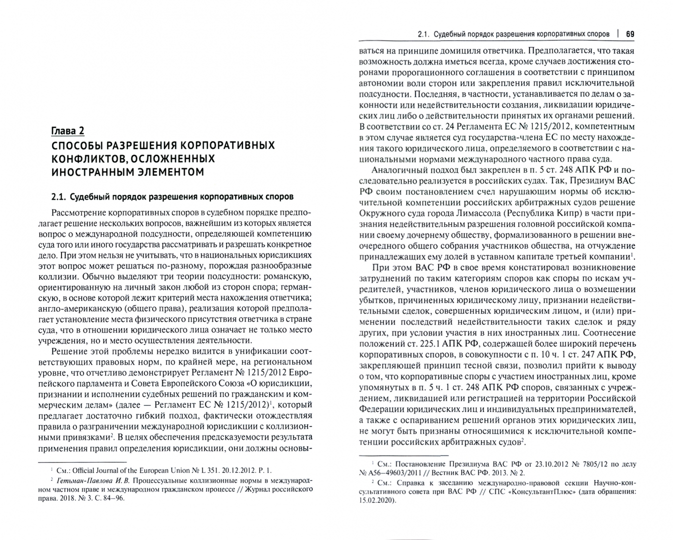 ОписаниеМонография посвящена изучению корпоративных конфликтов, осложненных иностранным элементом, а также способам их разрешения.В настоящее время несовершенство законодательства говорит нам о том, что требуется провести ряд мероприятий по созданию механизмов разрешения корпоративных конфликтов, осложненных иностранным элементом. Отсутствие единообразного законодательного и доктринального подходов к пониманию сущности корпоративных конфликтов только ухудшает ситуацию.Законодательство приведено по состоянию на 17 июня 2021 г.Монография предназначена для преподавателей, аспирантов и студентов юридических вузов.Монография посвящена изучению корпоративных конфликтов, осложненных иностранным элементом, а также способам их разрешения.В настоящее время несовершенство законодательства говорит нам о том, что требуется провести ряд мероприятий по созданию механизмов разрешения корпоративных конфликтов, осложненных иностранным элементом. Отсутствие единообразного законодательного и доктринального подходов к пониманию сущности корпоративных конфликтов только ухудшает ситуацию.Законодательство приведено по состоянию на 17 июня 2021 г.Монография предназначена для преподавателей, аспирантов и студентов юридических вузов.