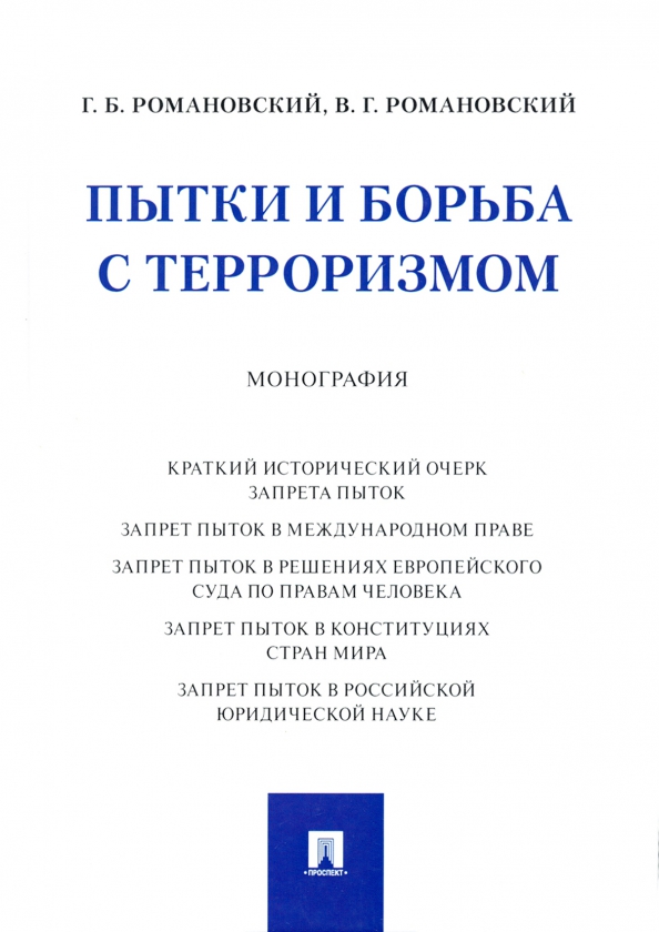 -Романовский, Романовский: Пытки и борьба с терроризмом. МонографияСудебная системаАдвокатура. НотариатЮриспруденцияПравоохранительные органы. КриминалистикаКонституционное правоОхрана трудаГосударственное правоТрудовое право. Право социального обеспеченияЭкологическое, лесное, водное, горное правоИнтеллектуальное правоГосударственное и муниципальное управлениеЗемельное правоЖилищное, семейное правоАдминистративное правоТеория и история государства и праваУголовное правоМеждународное правоЮридическая консультацияЗаконы, кодексы и комментарииГражданское право