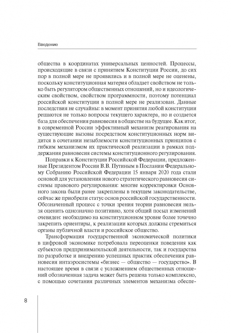 ОписаниеАнализируются основные подходы к пониманию концепции равновесия системы конституционного регулирования предпринимательской деятельности, сложившиеся в российской и зарубежной науке, с целью выявить концептуальные теоретические положения и предложить практические рекомендации, направленные на решение проблемы, касающейся обеспечения равновесия интаэросистемы «бизнес — общество — государство» посредством конституционного регулирования предпринимательских отношений в Российской Федерации как аттрактора устойчивого развития государства. Определено, что предложение о внесении поправок в КонституциюРоссийской Федерации характеризует трансформацию стратегического равновесия российского общества и государства.Книга адресована ученым, преподавателям, аспирантам и студентам юридических вузов, работникам органов публичной власти, а также широкомукругу читателей, проявляющих интерес к проблемам конституционной экономики, парадигме конституционного регулирования предпринимательских отношений.Анализируются основные подходы к пониманию концепции равновесия системы конституционного регулирования предпринимательской деятельности, сложившиеся в российской и зарубежной науке, с целью выявить концептуальные теоретические положения и предложить практические рекомендации, направленные на решение проблемы, касающейся обеспечения равновесия интаэросистемы «бизнес — общество — государство» посредством конституционного регулирования предпринимательских отношений в Российской Федерации как аттрактора устойчивого развития государства. Определено, что предложение о внесении поправок в КонституциюРоссийской Федерации характеризует трансформацию стратегического равновесия российского общества и государства.Книга адресована ученым, преподавателям, аспирантам и студентам юридических вузов, работникам органов публичной власти, а также широкомукругу читателей, проявляющих интерес к проблемам конституционной экономики, парадигме конституционного регулирования предпринимательских отношений.