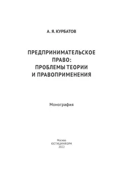 Алексей Курбатов: Предпринимательское право. Проблемы теории и правоприменения. Монография