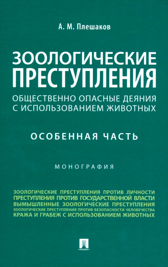 Александр Плешаков: Зоологические преступления. Общественно опасные деяния с использованием животных. Монография