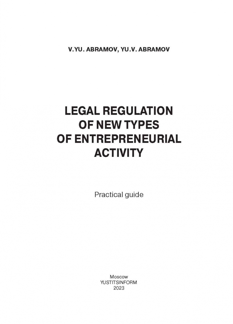 Абрамов, Абрамов: Правовое регулирование новых видов предпринимательской деятельности. Практическое пособие