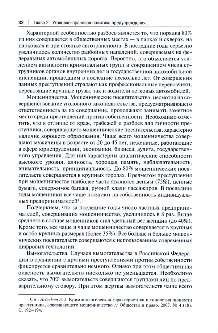 ОписаниеВ монографии рассматриваются понятие, содержание и основные направления уголовно-правовой политики в сфере предупреждения имущественной и насильственной преступности в Российской Федерации в условиях построения правовой государственности и современной рыночной экономики. Особое внимание уделяется предупредительным и профилактическим мерам, призванным снизить уровень преступности в указанной сфере. Подчеркивается, что повышение эффективности функционирования базовых уголовно-правовых институтов, укрепление их превентивной функции невозможны без четко выстроенной уголовно-правовой политики государства и системы предупреждения имущественной и насильственной преступности. Законодательство приведено по состоянию на 1 сентября 2022 г.Монография адресована студентам юридических вузов и факультетов, аспирантам, научно-педагогическим и практическим работникам правоохранительных органов, а также широкому кругу читателей, интересующихся проблематикой предупреждения преступной угрозы в России.СвернутьВ монографии рассматриваются понятие, содержание и основные направления уголовно-правовой политики в сфере предупреждения имущественной и насильственной преступности в Российской Федерации в условиях построения правовой государственности и современной рыночной экономики. Особое внимание уделяется предупредительным и профилактическим мерам, призванным снизить уровень преступности в указанной сфере. Подчеркивается, что повышение эффективности функционирования базовых уголовно-правовых институтов, укрепление их превентивной функции невозможны без четко выстроенной уголовно-правовой политики государства и системы предупреждения имущественной и насильственной преступности. Законодательство приведено по состоянию на 1 сентября 2022 г.Монография адресована студентам юридических вузов и факультетов, аспирантам, научно-педагогическим и практическим работникам правоохранительных органов, а также широкому кругу читателей, интересующихся проблематикой предупреждения преступной угрозы в России.СвернутьСвернуть