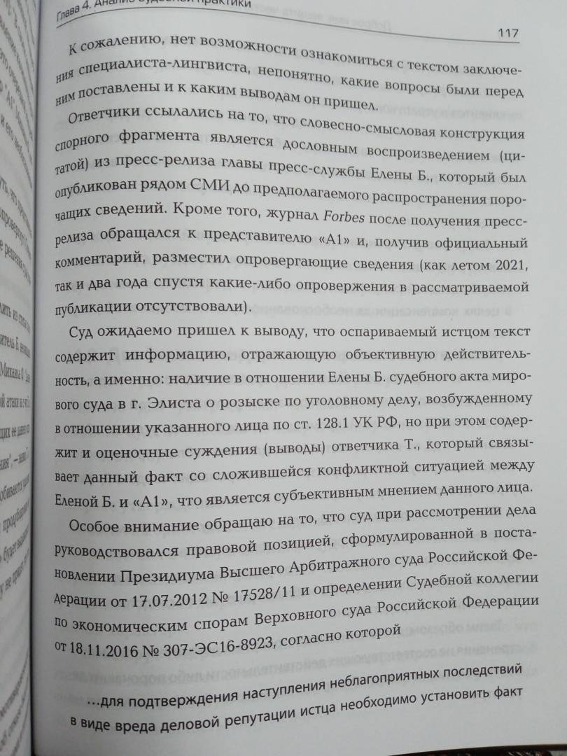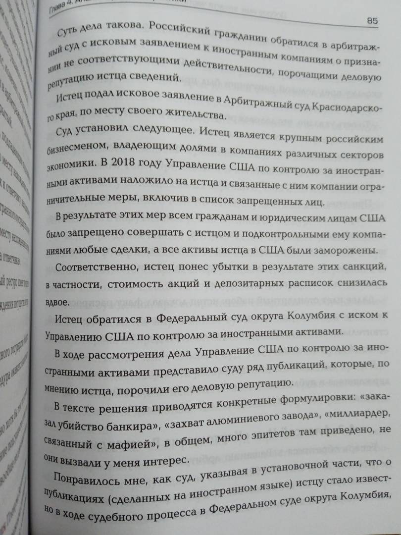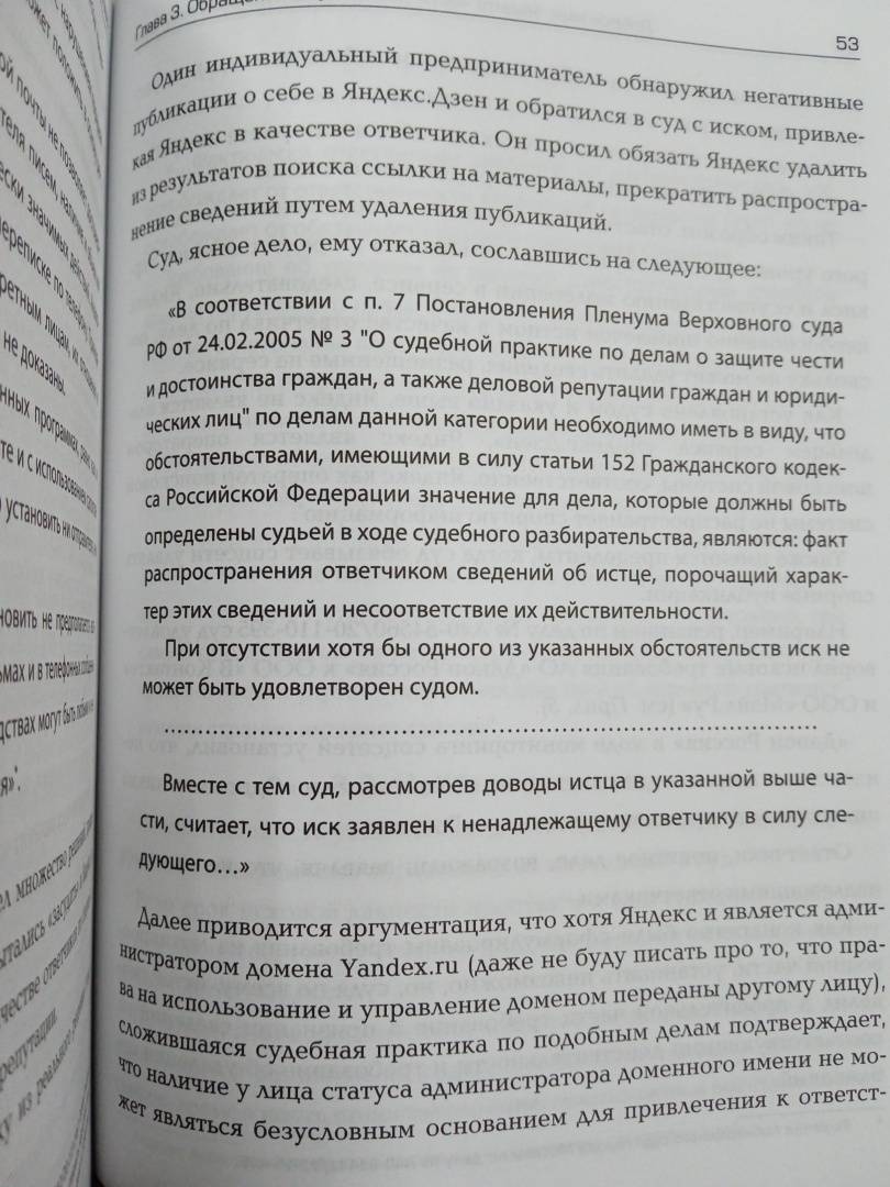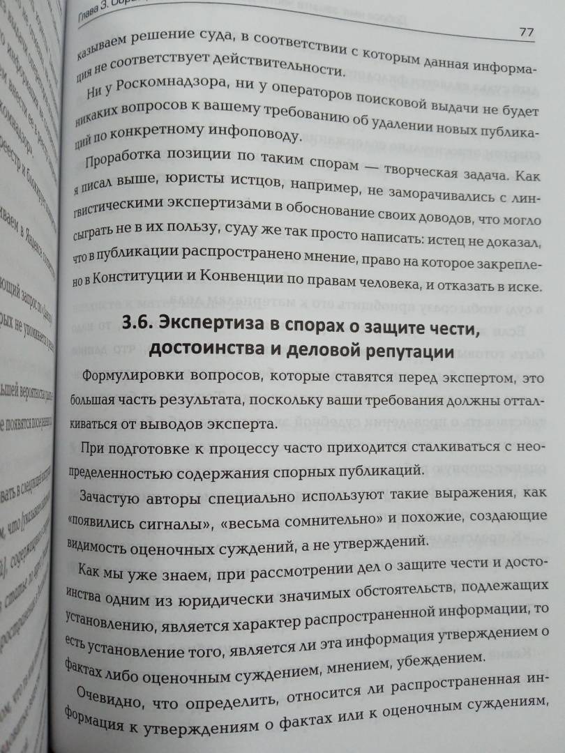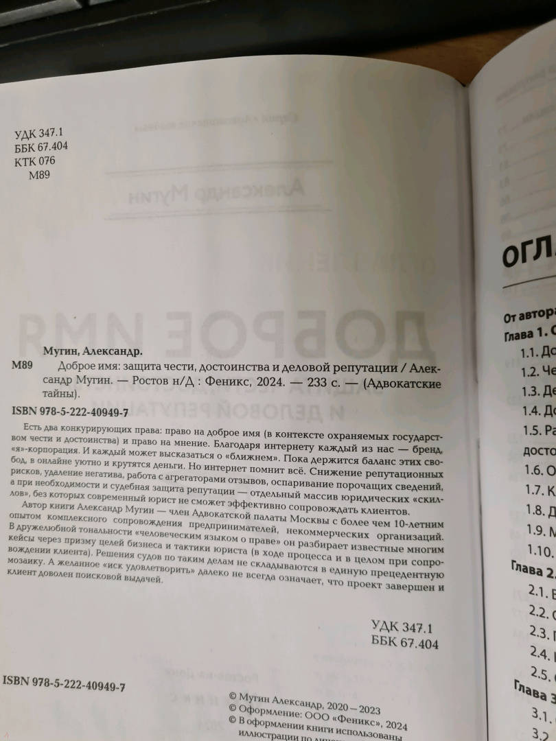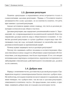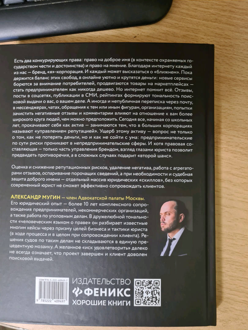 ОписаниеЕсть два конкурирующих права: право на доброе имя (в контексте охраняемых государством чести и достоинства) и право на мнение. Благодаря интернету каждый из нас - бренд, "я"-корпорация. И каждый может высказаться о "ближнем". Пока держится баланс этих свобод, в онлайне уютно и крутятся деньги. Но интернет помнит всё. Снижение репутационных рисков, удаление негатива, работа с агрегаторами отзывов, оспаривание порочащих сведений, а при необходимости и судебная защита репутации - отдельный массив юридических "скиллов", без которых современный юрист не сможет эффективно сопровождать клиентов.Автор книги Александр Мугин - член Адвокатской палаты Москвы с более чем 10-летним опытом комплексного сопровождения предпринимателей, некоммерческих организаций. В дружелюбной тональности "человеческим языком о праве" он разбирает известные многим кейсы через призму целей бизнеса и тактики юриста (в ходе процесса и в целом при сопровождении клиента). Решения судов по таким делам не складываются в единую прецедентную мозаику. А желанное "иск удовлетворить" далеко не всегда означает, что проект завершен и клиент доволен поисковой выдачей.СвернутьЕсть два конкурирующих права: право на доброе имя (в контексте охраняемых государством чести и достоинства) и право на мнение. Благодаря интернету каждый из нас - бренд, "я"-корпорация. И каждый может высказаться о "ближнем". Пока держится баланс этих свобод, в онлайне уютно и крутятся деньги. Но интернет помнит всё. Снижение репутационных рисков, удаление негатива, работа с агрегаторами отзывов, оспаривание порочащих сведений, а при необходимости и судебная защита репутации - отдельный массив юридических "скиллов", без которых современный юрист не сможет эффективно сопровождать клиентов.Автор книги Александр Мугин - член Адвокатской палаты Москвы с более чем 10-летним опытом комплексного сопровождения предпринимателей, некоммерческих организаций. В дружелюбной тональности "человеческим языком о праве" он разбирает известные многим кейсы через призму целей бизнеса и тактики юриста (в ходе процесса и в целом при сопровождении клиента). Решения судов по таким делам не складываются в единую прецедентную мозаику. А желанное "иск удовлетворить" далеко не всегда означает, что проект завершен и клиент доволен поисковой выдачей.СвернутьСвернуть