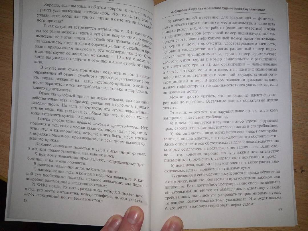 ОписаниеРешить юридическую проблему или выиграть дело в суде без привлечения юриста, - разве это возможно? Во многих случаях - да! Конечно, бывает, что помощь квалифицированного специалиста необходима, но есть немало ситуаций, когда можно справиться самостоятельно. В этой книге даны ответы на многие насущные вопросы юридического характера, описаны распространенные проблемы и дан ясный алгоритм действий по их разрешению, советы и рекомендации по подготовке и проведению судебного процесса. Отстоять свои права в суде нелегко, но вслед за этим предстоит второй этап - добиться исполнения судебного решения. Здесь неискушенный человек нередко сталкивается с неожиданными сложностями и препятствиями, которых можно избежать, если заранее знать о своих правах, о том, как происходит исполнительное производство и как правильно взаимодействовать с судебным приставом. Книга написана легким, доступным языком, автор шаг за шагом проводит читателя через все этапы сложного процесса: от понимания проблемы и поиска путей решения - до итогового положительного результата.СвернутьРешить юридическую проблему или выиграть дело в суде без привлечения юриста, - разве это возможно? Во многих случаях - да! Конечно, бывает, что помощь квалифицированного специалиста необходима, но есть немало ситуаций, когда можно справиться самостоятельно. В этой книге даны ответы на многие насущные вопросы юридического характера, описаны распространенные проблемы и дан ясный алгоритм действий по их разрешению, советы и рекомендации по подготовке и проведению судебного процесса. Отстоять свои права в суде нелегко, но вслед за этим предстоит второй этап - добиться исполнения судебного решения. Здесь неискушенный человек нередко сталкивается с неожиданными сложностями и препятствиями, которых можно избежать, если заранее знать о своих правах, о том, как происходит исполнительное производство и как правильно взаимодействовать с судебным приставом. Книга написана легким, доступным языком, автор шаг за шагом проводит читателя через все этапы сложного процесса: от понимания проблемы и поиска путей решения - до итогового положительного результата.СвернутьСвернуть