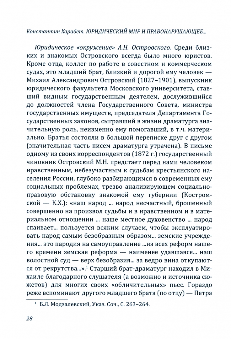Константин Харабет: Юридический мир и правонарушающее поведение в драматургии А.Н. Островского