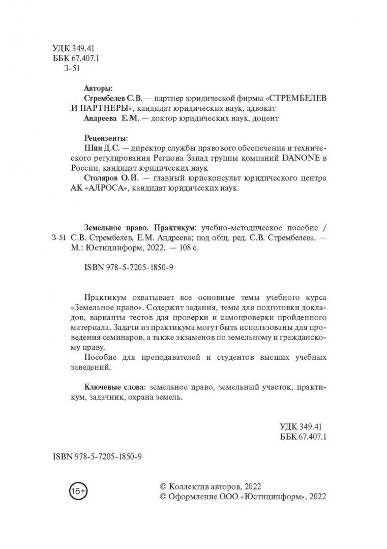 Стрембелев, Андреева: Земельное право. Практикум. Учебно-методическое пособие