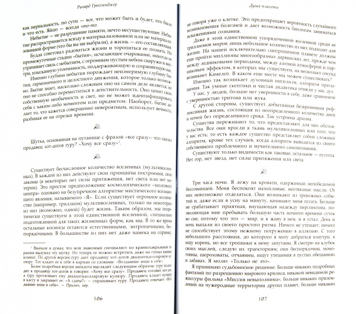 ОписаниеРичард Гроссинджер - автор множества книг, обладатель докторской степени по антропологии, основатель издательства "North Atlantic Books" (штат Калифорния).В этой книге автор задается глобальными вопросами. Он пытается разобраться в том, каким образом поступки современного человека отражаются на среде его обитания - планете Земля, к чему это может привести, и что следует предпринять, чтобы избежать негативных последствий."Душа планеты" представляет собой своего рода альманах, включающий краткие эссе, научно-фантастические истории, документальные рассказы, некрологи, статьи с критикой мировых политических деятелей, обзоры книг и музыки, а также буддийские заметки. Гроссинджер затрагивает такие темы, как связь материи и сознания; противостояние науки и духовности; опасности религиозного и научного фундаментализма; уничтожение человеком природы и живых существ; а также пишет об истории и долгосрочном будущем нашей планеты.Необычная манера подачи материала позволяет автору охватить большое количество острых вопросов, касающихся жизни на планете - начиная от загрязнения окружающей среды и заканчивая растущим уровнем безработицы. Привлекая внимание читателя к проблемам современного мира, Гроссинджер призывает к ответственному и заботливому отношению к планете, к проявлению активной жизненной позиции и осознанию человеком своей роли в жизни общества.СвернутьРичард Гроссинджер - автор множества книг, обладатель докторской степени по антропологии, основатель издательства "North Atlantic Books" (штат Калифорния).В этой книге автор задается глобальными вопросами. Он пытается разобраться в том, каким образом поступки современного человека отражаются на среде его обитания - планете Земля, к чему это может привести, и что следует предпринять, чтобы избежать негативных последствий."Душа планеты" представляет собой своего рода альманах, включающий краткие эссе, научно-фантастические истории, документальные рассказы, некрологи, статьи с критикой мировых политических деятелей, обзоры книг и музыки, а также буддийские заметки. Гроссинджер затрагивает такие темы, как связь материи и сознания; противостояние науки и духовности; опасности религиозного и научного фундаментализма; уничтожение человеком природы и живых существ; а также пишет об истории и долгосрочном будущем нашей планеты.Необычная манера подачи материала позволяет автору охватить большое количество острых вопросов, касающихся жизни на планете - начиная от загрязнения окружающей среды и заканчивая растущим уровнем безработицы. Привлекая внимание читателя к проблемам современного мира, Гроссинджер призывает к ответственному и заботливому отношению к планете, к проявлению активной жизненной позиции и осознанию человеком своей роли в жизни общества.СвернутьСвернуть