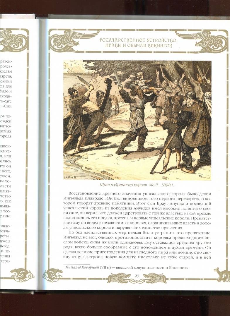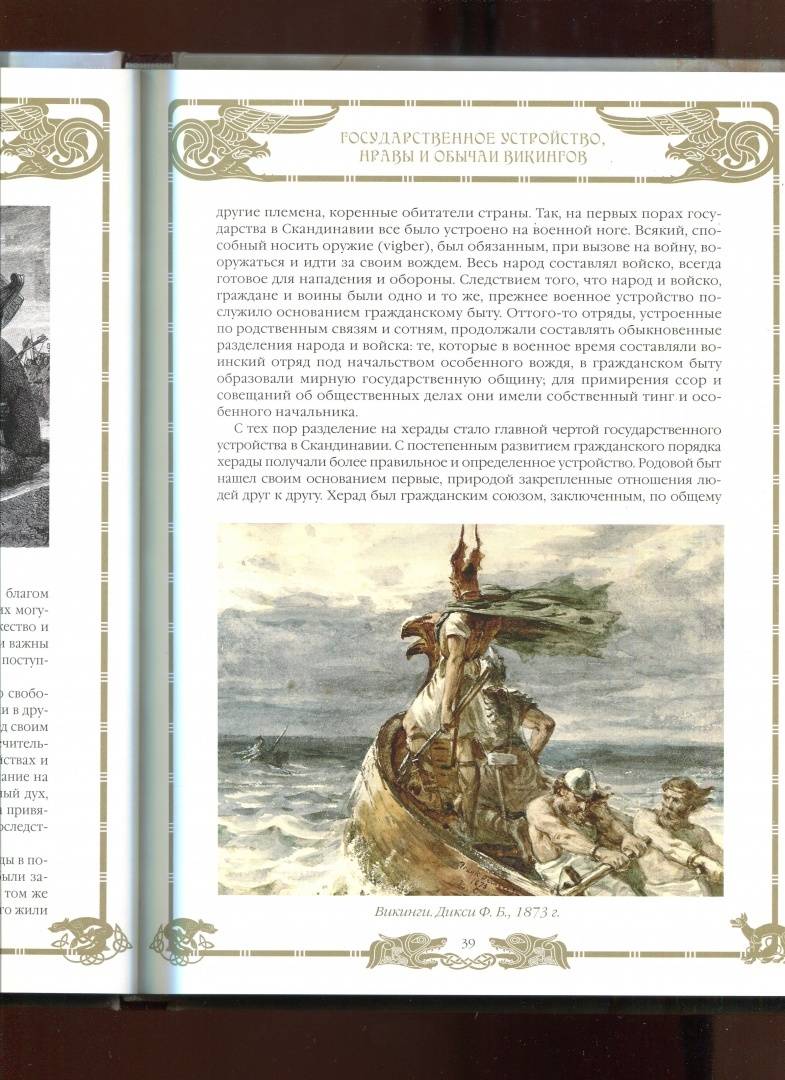 ОписаниеВикинги - грозные воины, покорившие Америку задолго до Колумба и основавшие Русское государство. Их ладьи наводили страх на врагов не только в северных морях, но и у берегов Африки. В Европе их называли "норманнами", в Древней Руси - "варягами", в арабских странах - "русами".Тысяча лет отделяет нас от "золотой эпохи" викингов, и сегодня их история столь причудливо перемешалась с мифами и легендами, что и не разделить... Были ли викинги дикими, необразованными варварами, разрушителями? Или же хранителями уникальной древней культуры и собственного кодекса воинской чести?Труд выдающегося шведского историка Андерса Магнуса Стриннгольма (1786- 1862) "Походы викингов, государственное устройство, нравы и обычаи древних скандинавов" увидел свет в 1835 году. В дальнейшем он многократно переиздавался и продолжает оставаться одним из авторитетнейших исследований по истории викингов.Текст книги основан на редком, первом издании книги Стриннгольма на русском языке (1861, перевод А. Шемякина).СвернутьВикинги - грозные воины, покорившие Америку задолго до Колумба и основавшие Русское государство. Их ладьи наводили страх на врагов не только в северных морях, но и у берегов Африки. В Европе их называли "норманнами", в Древней Руси - "варягами", в арабских странах - "русами".Тысяча лет отделяет нас от "золотой эпохи" викингов, и сегодня их история столь причудливо перемешалась с мифами и легендами, что и не разделить... Были ли викинги дикими, необразованными варварами, разрушителями? Или же хранителями уникальной древней культуры и собственного кодекса воинской чести?Труд выдающегося шведского историка Андерса Магнуса Стриннгольма (1786- 1862) "Походы викингов, государственное устройство, нравы и обычаи древних скандинавов" увидел свет в 1835 году. В дальнейшем он многократно переиздавался и продолжает оставаться одним из авторитетнейших исследований по истории викингов.Текст книги основан на редком, первом издании книги Стриннгольма на русском языке (1861, перевод А. Шемякина).СвернутьСвернуть