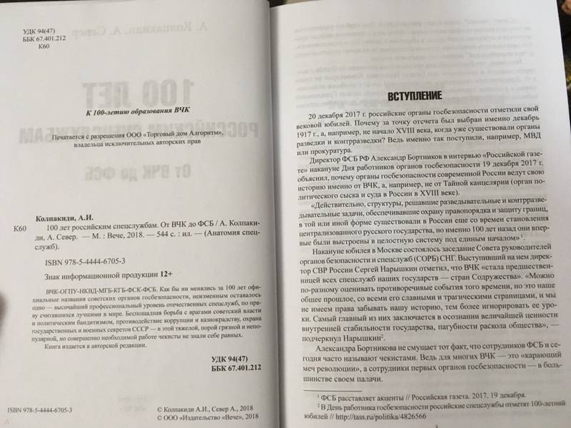 Колпакиди, Север: 100 лет российским спецслужбам. От ВЧК до ФСБ