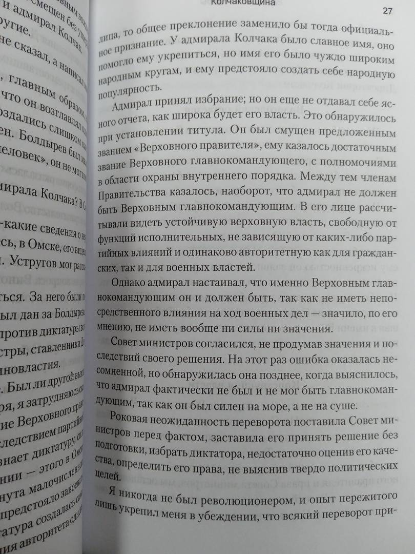 ОписаниеФигура Верховного правителя России адмирала Колчака является одной из самых противоречивых в истории Гражданской войны. Одни считают его последним верным сыном Отечества, другие клеймят позором за связь с интервентами и опору на полубандитских "атаманов" всех мастей. Однако за спорами о личности Колчака и его влиянии на ход Гражданской войны даже маститые исследователи иногда упускают из виду то общество, которое во многом и формировало государство с Верховным правителем во главе. В этом сборнике воспоминаний читатель найдет свидетельства очевидцев тех событий, людей, принимавших непосредственное участие в создании и разрушении "белогвардейской республики". Благодаря терпению и мастерству составителя этого сборника Н.А. Корнатовского перед читателем откроется полная картина событий, которые происходили в те годы на территориях, контролируемых колчаковцами.Фигура Верховного правителя России адмирала Колчака является одной из самых противоречивых в истории Гражданской войны. Одни считают его последним верным сыном Отечества, другие клеймят позором за связь с интервентами и опору на полубандитских "атаманов" всех мастей. Однако за спорами о личности Колчака и его влиянии на ход Гражданской войны даже маститые исследователи иногда упускают из виду то общество, которое во многом и формировало государство с Верховным правителем во главе. В этом сборнике воспоминаний читатель найдет свидетельства очевидцев тех событий, людей, принимавших непосредственное участие в создании и разрушении "белогвардейской республики". Благодаря терпению и мастерству составителя этого сборника Н.А. Корнатовского перед читателем откроется полная картина событий, которые происходили в те годы на территориях, контролируемых колчаковцами.
