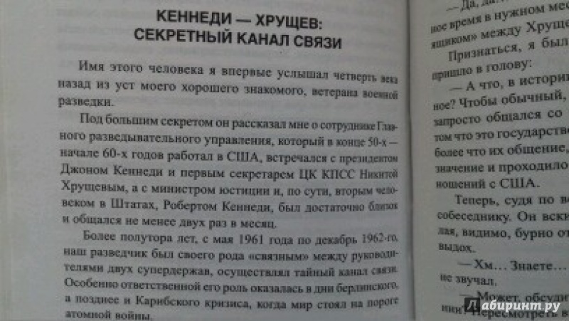 ОписаниеСудьбы людей, о которых идет речь в книге, порою похожи на этакий роман-фэнтези с резво закрученным сюжетом. Не просто поверить в то, что наш офицер-разведчик, работавший под крышей советского информагентства, водил дружбу с всесильным министром юстиции Робертом Кеннеди, а в сложные месяцы Берлинского и Карибского кризисов передавал от главы США известия лично Никите Хрущеву.Другой герой книги — шофер советского военного атташе в Вашингтоне. Воинское звание весьма скромное – старший лейтенант, но на самом деле резидент военной разведки в сердце США.Судьбы людей, о которых идет речь в книге, порою похожи на этакий роман-фэнтези с резво закрученным сюжетом. Не просто поверить в то, что наш офицер-разведчик, работавший под крышей советского информагентства, водил дружбу с всесильным министром юстиции Робертом Кеннеди, а в сложные месяцы Берлинского и Карибского кризисов передавал от главы США известия лично Никите Хрущеву.Другой герой книги — шофер советского военного атташе в Вашингтоне. Воинское звание весьма скромное – старший лейтенант, но на самом деле резидент военной разведки в сердце США.