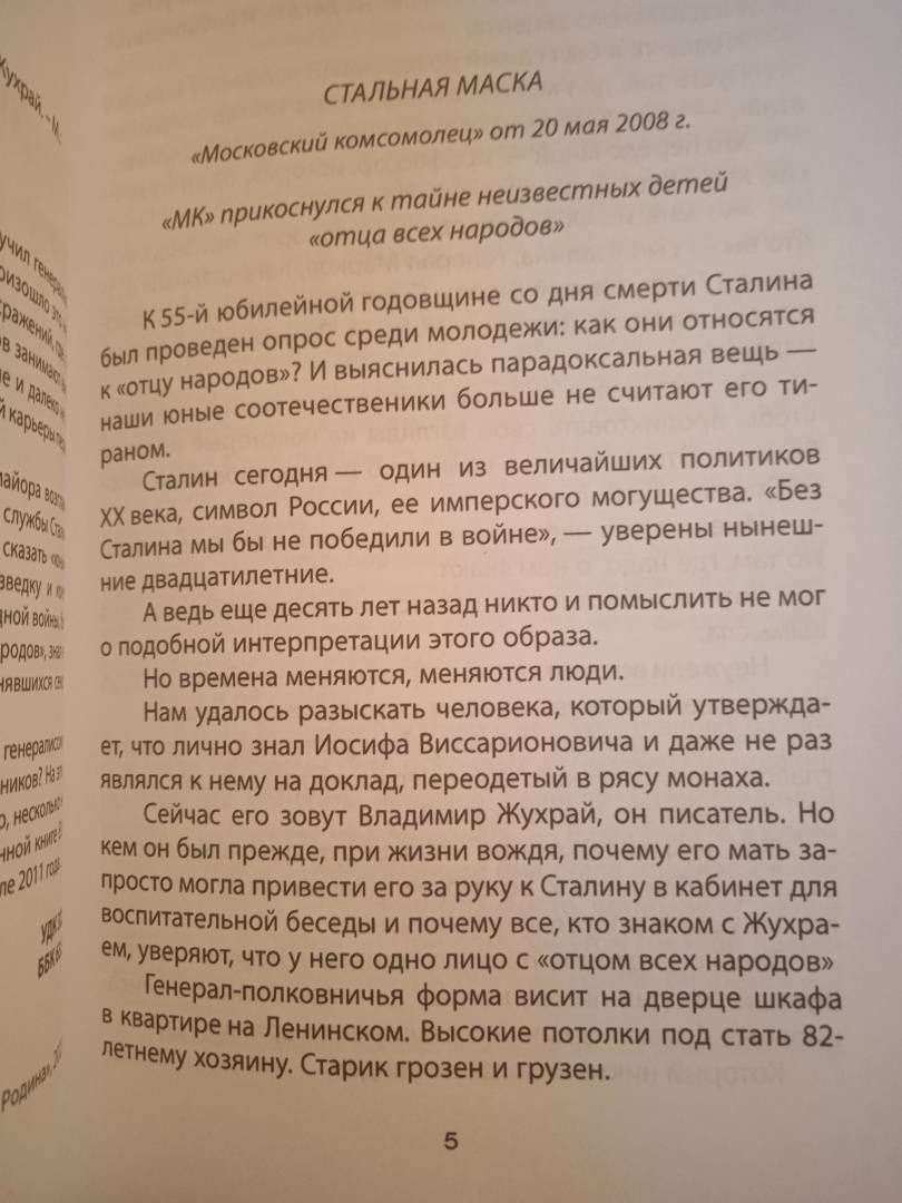 ОписаниеВладимир Михайлович Жухрай получил генеральское звание, будучи… 22 лет от роду. И произошло это не на полях колоссальных кровопролитных сражений, где, случается, места погибших военачальников занимают выдающиеся молодые офицеры, а в тяжелые и далеко не самые "удобные" для головокружительной карьеры первые послевоенные годы.В 1948-м Жухрай в звании генерал-майора возглавил аналитический отдел личной секретной службы Сталина. Со своим отделом молодой (чтобы не сказать "юный") генерал курировал стратегическую разведку и контрразведку на "фронтах" глобальной холодной войны, был, разумеется, особо приближен к "отцу народов", знал великое множество наиболее строго охранявшихся секретов того времени.Чем занималась личная спецслужба генералиссимуса? Кто входил в число ее главных противников? На эти и другие вопросы читатель найдет, возможно, несколько неожиданные для него ответы в представленной книге.Владимир Михайлович Жухрай получил генеральское звание, будучи… 22 лет от роду. И произошло это не на полях колоссальных кровопролитных сражений, где, случается, места погибших военачальников занимают выдающиеся молодые офицеры, а в тяжелые и далеко не самые "удобные" для головокружительной карьеры первые послевоенные годы.В 1948-м Жухрай в звании генерал-майора возглавил аналитический отдел личной секретной службы Сталина. Со своим отделом молодой (чтобы не сказать "юный") генерал курировал стратегическую разведку и контрразведку на "фронтах" глобальной холодной войны, был, разумеется, особо приближен к "отцу народов", знал великое множество наиболее строго охранявшихся секретов того времени.Чем занималась личная спецслужба генералиссимуса? Кто входил в число ее главных противников? На эти и другие вопросы читатель найдет, возможно, несколько неожиданные для него ответы в представленной книге.