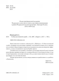 ОписаниеКнига известного военного собаковода В. Л. Швабского "Собака на воинской службе" раскрывает малоизученные страницы отечественной истории: роль и значение использования в Красной армии четвероногих помощников человека как невероятно эффективного, а подчас и незаменимого средства борьбы с врагом.Основная часть исследования, основанного на изучении автором большого массива разнообразных архивных материалов, посвящена Великой Отечественной войне, в годы которой применение советскими войсками собак для уничтожения живой силы и техники противника стало массовым явлением.Издание предназначено для всех, интересующихся историей военного и служебного собаководства.Книга известного военного собаковода В. Л. Швабского "Собака на воинской службе" раскрывает малоизученные страницы отечественной истории: роль и значение использования в Красной армии четвероногих помощников человека как невероятно эффективного, а подчас и незаменимого средства борьбы с врагом.Основная часть исследования, основанного на изучении автором большого массива разнообразных архивных материалов, посвящена Великой Отечественной войне, в годы которой применение советскими войсками собак для уничтожения живой силы и техники противника стало массовым явлением.Издание предназначено для всех, интересующихся историей военного и служебного собаководства.