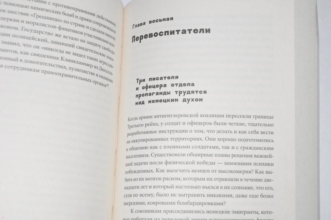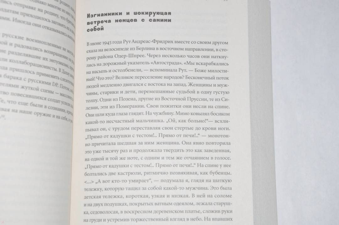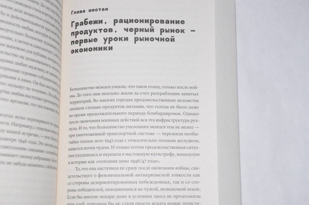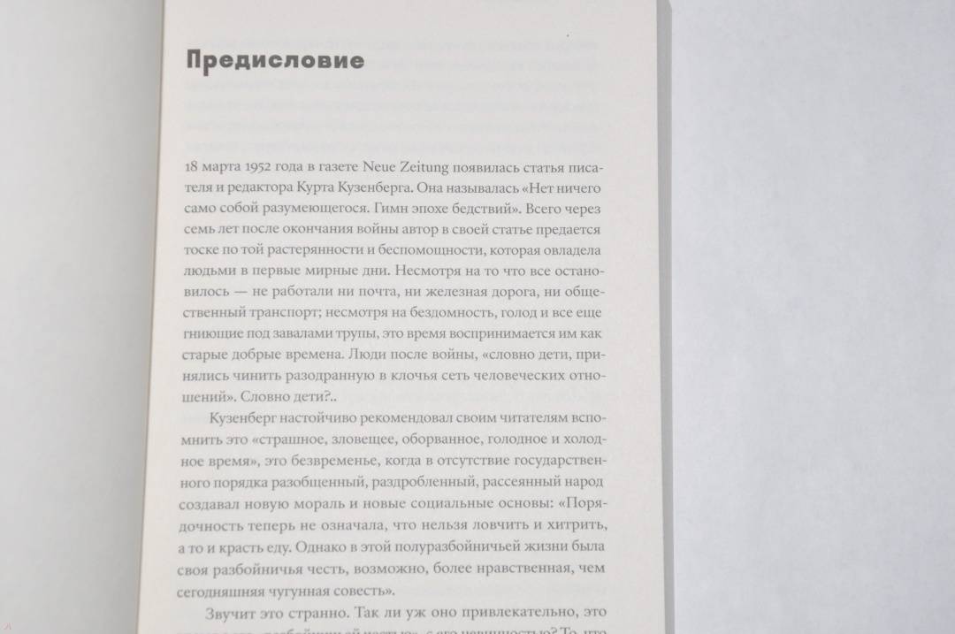 ОписаниеКаково это - жить в стране, потерпевшей чудовищное военное и нравственное поражение? "Волчье время" - панорамный рассказ о первом десятилетии после Второй мировой войны, когда Германия выбиралась из-под обломков гитлеровского режима и превращалась в современную демократию. Страна была поделена на оккупационные зоны, города лежали в руинах, большая часть населения лишилась крыши над головой. Все, что объединяло людей прежде, было полностью уничтожено. Немцы не спешили признавать свою вину за нацистские преступления - травма послевоенного времени для многих оказалась страшнее самой войны. Но разруха, голод и необходимость бороться за выживание не мешали им влюбляться, веселиться и мечтать. Это было время волков, когда каждый заботился только о себе и своей стае, - но также время изобретения новой политики, новой литературы, нового искусства и нового мировоззрения. Книга немецкого публициста Харальда Йенера, ставшая бестселлером в Германии и переведенная на шесть европейских языков, - захватывающий портрет общества, которое очнулось после катастрофы и смогло отыскать путь в будущее.СвернутьКаково это - жить в стране, потерпевшей чудовищное военное и нравственное поражение? "Волчье время" - панорамный рассказ о первом десятилетии после Второй мировой войны, когда Германия выбиралась из-под обломков гитлеровского режима и превращалась в современную демократию. Страна была поделена на оккупационные зоны, города лежали в руинах, большая часть населения лишилась крыши над головой. Все, что объединяло людей прежде, было полностью уничтожено. Немцы не спешили признавать свою вину за нацистские преступления - травма послевоенного времени для многих оказалась страшнее самой войны. Но разруха, голод и необходимость бороться за выживание не мешали им влюбляться, веселиться и мечтать. Это было время волков, когда каждый заботился только о себе и своей стае, - но также время изобретения новой политики, новой литературы, нового искусства и нового мировоззрения. Книга немецкого публициста Харальда Йенера, ставшая бестселлером в Германии и переведенная на шесть европейских языков, - захватывающий портрет общества, которое очнулось после катастрофы и смогло отыскать путь в будущее.СвернутьСвернуть