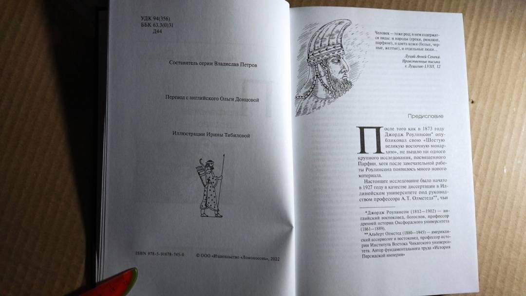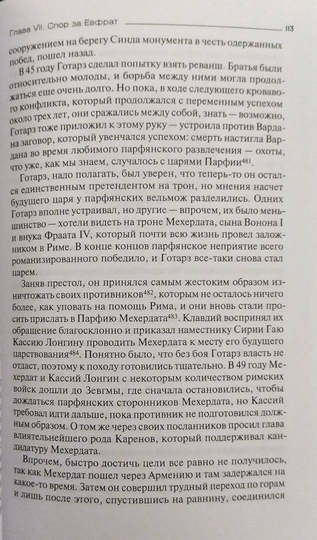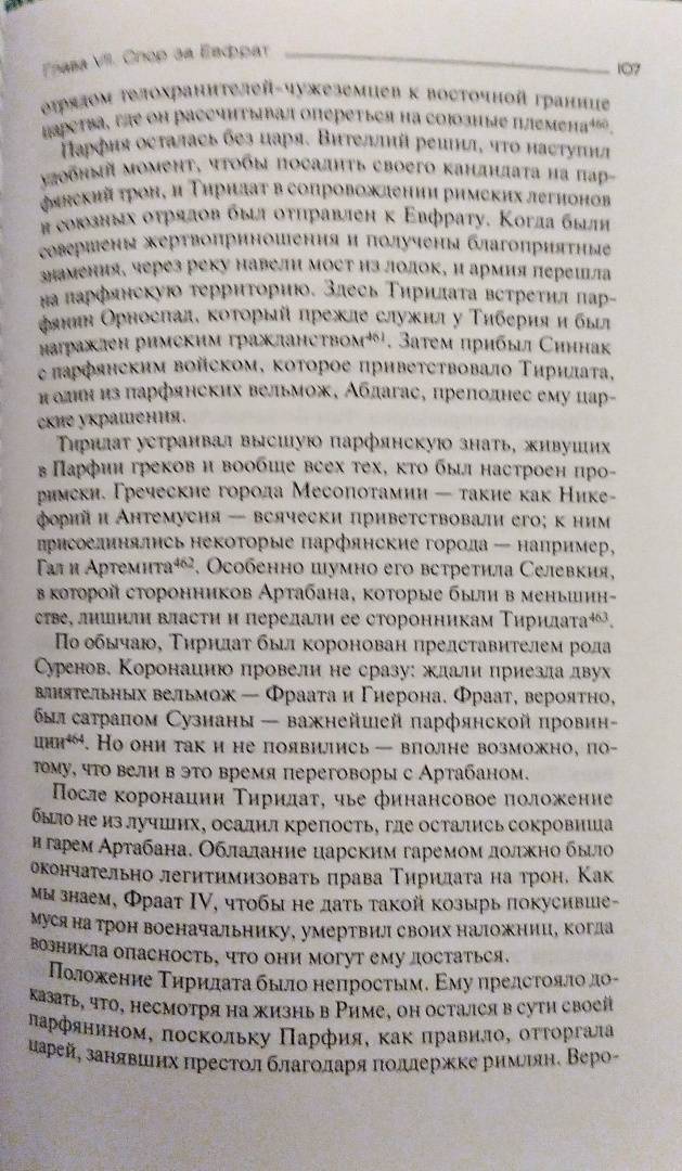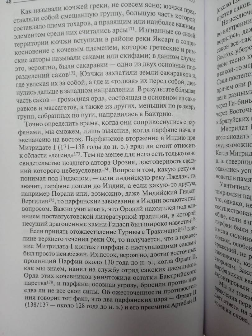 ОписаниеКрупнейший американский историк Нельсон Дибвойз по крупицам, основываясь на свидетельствах античных авторов, данных археологии и нумизматики, воссоздал историю одной из величайших империй древности - Парфянского царства. В лучшую пору своего существования Парфия вбирала в себя территории современных Ирана, Ирака, Афганистана, Пакистана и Туркменистана и соперничала с другой великой империей - Римской. Весной 53 года до н. э. парфяне в битве при Каррах нанесли жестокое поражение римской армии Марка Лициния Красса и к 40 году до н. э. захватили почти всю Малую Азию, Сирию и Палестину. Попытки римлян взять реванш долгое время ни к чему не приводили, но им помогли многочисленные претенденты на парфянский престол, которые в междоусобной борьбе довели свою державу до полного изнеможения. Просуществовав без малого пять веков, Парфия распалась. На ее обломках возникла империя Сасанидов.Нельсон Кэрел Дибвойз (1903-1992) - востоковед, археолог, сотрудник Государственного департамента США.Крупнейший американский историк Нельсон Дибвойз по крупицам, основываясь на свидетельствах античных авторов, данных археологии и нумизматики, воссоздал историю одной из величайших империй древности - Парфянского царства. В лучшую пору своего существования Парфия вбирала в себя территории современных Ирана, Ирака, Афганистана, Пакистана и Туркменистана и соперничала с другой великой империей - Римской. Весной 53 года до н. э. парфяне в битве при Каррах нанесли жестокое поражение римской армии Марка Лициния Красса и к 40 году до н. э. захватили почти всю Малую Азию, Сирию и Палестину. Попытки римлян взять реванш долгое время ни к чему не приводили, но им помогли многочисленные претенденты на парфянский престол, которые в междоусобной борьбе довели свою державу до полного изнеможения. Просуществовав без малого пять веков, Парфия распалась. На ее обломках возникла империя Сасанидов.Нельсон Кэрел Дибвойз (1903-1992) - востоковед, археолог, сотрудник Государственного департамента США.