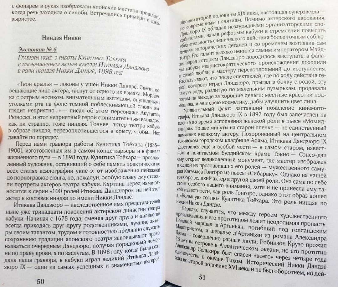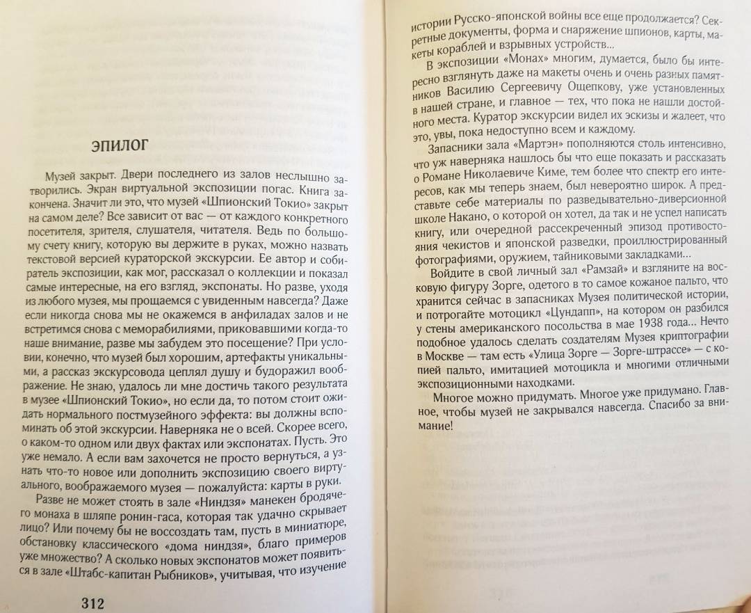 ОписаниеОб истории можно рассказывать в книгах и статьях, можно снимать о ней фильмы и разглядывать музейные экспонаты - овеществленную память прошлого. Увлекательными бывают и сами истории - о шпионах, например. О знаменитых или о необычных - таких как ниндзя. Увы, все музеи ниндзя находятся далеко. Да и с музеями разведки дела в нашей стране не очень хороши. Поэтому Александр Куланов написал книгу об экспонатах из его личного собрания и о коллекциях его коллег, занимающихся историей противостояния японских и отечественных спецслужб - от ниндзя до Рихарда Зорге. Получилась кураторская экскурсия по пяти залам необычного музея с рассказом о той самой истории, о ее героях и уникальных экспонатах.Это не просто книга, это - билет. Купили? Добро пожаловать в "Шпионский Токио"!Об истории можно рассказывать в книгах и статьях, можно снимать о ней фильмы и разглядывать музейные экспонаты - овеществленную память прошлого. Увлекательными бывают и сами истории - о шпионах, например. О знаменитых или о необычных - таких как ниндзя. Увы, все музеи ниндзя находятся далеко. Да и с музеями разведки дела в нашей стране не очень хороши. Поэтому Александр Куланов написал книгу об экспонатах из его личного собрания и о коллекциях его коллег, занимающихся историей противостояния японских и отечественных спецслужб - от ниндзя до Рихарда Зорге. Получилась кураторская экскурсия по пяти залам необычного музея с рассказом о той самой истории, о ее героях и уникальных экспонатах.Это не просто книга, это - билет. Купили? Добро пожаловать в "Шпионский Токио"!