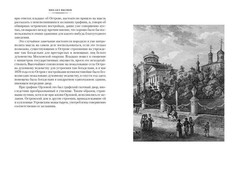 ОписаниеМихаил Иванович Пыляев (1842–1899) родился в Гдове, учился в Санкт-Петербурге, слушал лекции в Харьковском университете, много путешествовал, в том числе по Сибири и Кавказу, по Турции и Египту. В столичных изданиях Михаил Пыляев публиковал статьи по истории театра и балета, обзоры художественных выставок, писал о событиях культурной жизни Санкт-Петербурга. В 1879 году несколько статей о петербургской старине положили начало будущим сборникам «Старый Петербург. Рассказы из былой жизни столицы» и «Старая Москва. Рассказы из былой жизни первопрестольной столицы», снискавшим автору славу тонкого знатока истории. Для нас сочинения Михаила Пыляева остались зачастую единственным источником фактов, почерпнутых автором из частных архивов, впоследствии утраченных. Но и сами по себе эти чрезвычайно обаятельные повествования, своеобразные путеводители по минувшим дням двух российских столиц, даже более века спустя заслуженно пользуются любовью читателей.