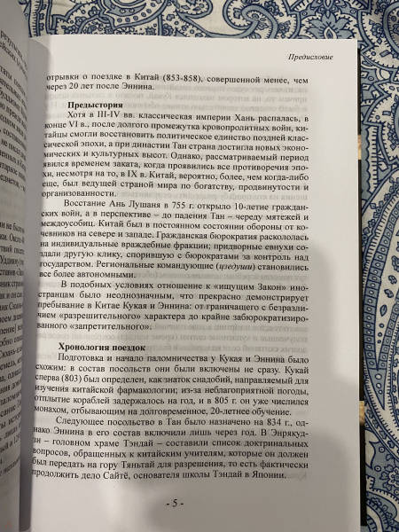 ОписаниеВ книге приводятся переводы писем и трудов Кукая (774-835), основоположника японской школы эзотерического буддизма Сингон, написанных в период его пребывания в танском Китае в 804-6 гг., а также перевод дневника монаха школы Тэндай Эннина (793-864), составленного во время его пребывания в Китае в 838-46 гг. Этот дневник считается единственным по глубине и широте описания одного из интереснейших периодов в китайской истории, отмеченного серьезными гонениями на буддизм. В Предисловии дается сравнительный анализ психологического состояния двух знаковых личностей раннего японского буддизма, описывается состояние буддизма в Японии того времени.В книге приводятся переводы писем и трудов Кукая (774-835), основоположника японской школы эзотерического буддизма Сингон, написанных в период его пребывания в танском Китае в 804-6 гг., а также перевод дневника монаха школы Тэндай Эннина (793-864), составленного во время его пребывания в Китае в 838-46 гг. Этот дневник считается единственным по глубине и широте описания одного из интереснейших периодов в китайской истории, отмеченного серьезными гонениями на буддизм. В Предисловии дается сравнительный анализ психологического состояния двух знаковых личностей раннего японского буддизма, описывается состояние буддизма в Японии того времени.
