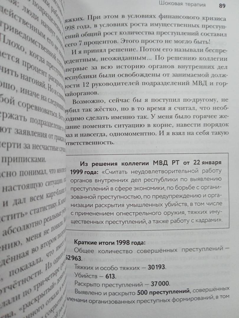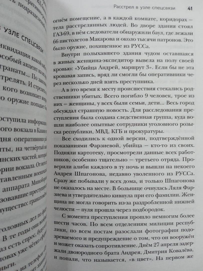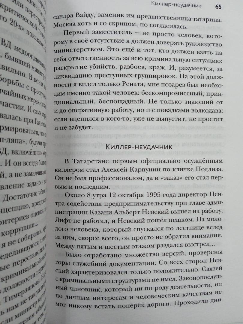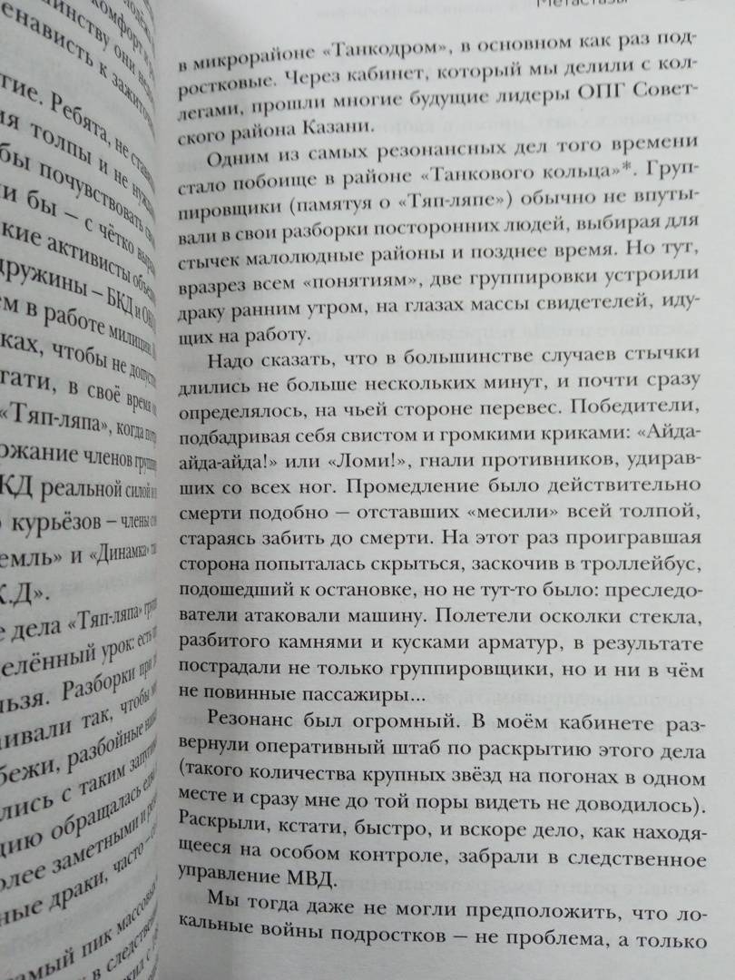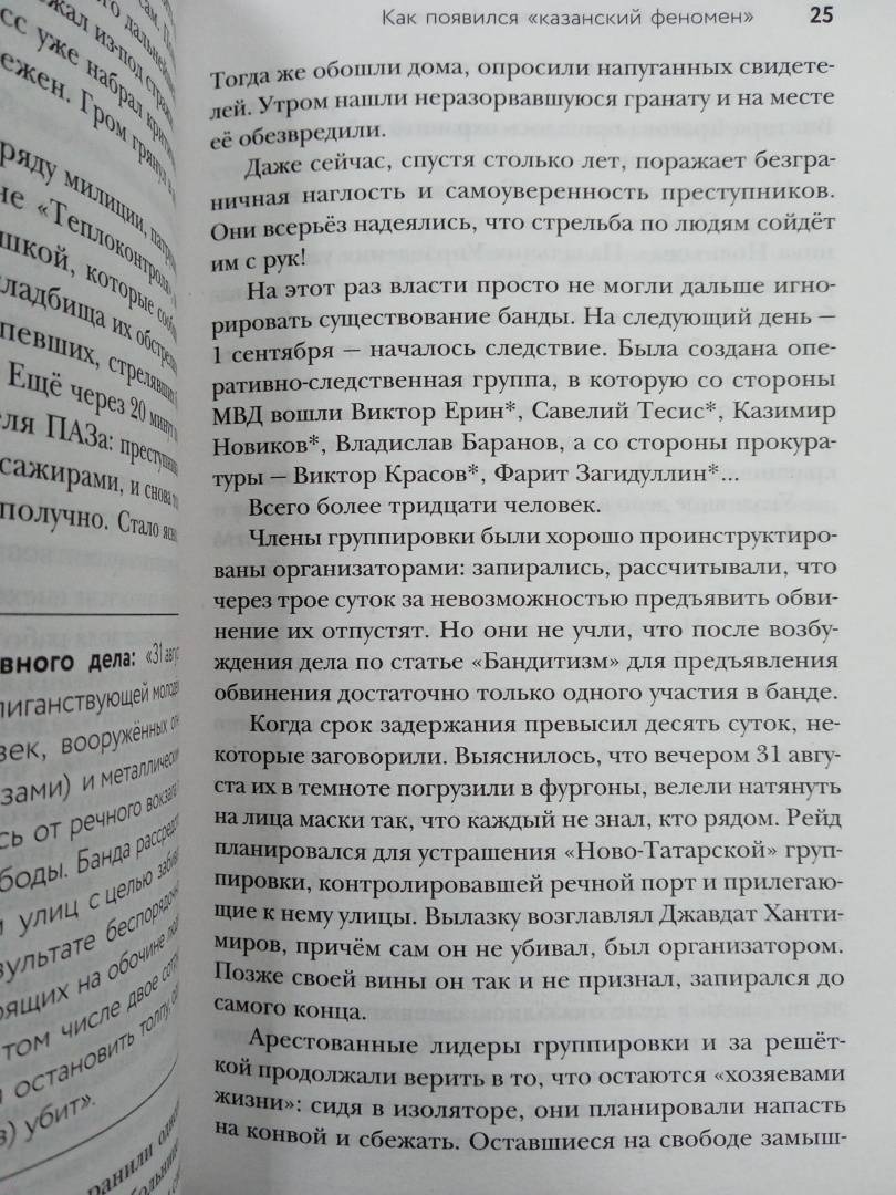 Описание"Моим друзьям и соратникам в борьбе с организованной преступностью посвящается"Асгат СафаровВ 1988 году "Литературная газета" и журнал "Огонёк" сообщили всей стране, что в СССР существует организованная преступность. Они же ввели новое понятие - "казанский феномен". После этого Казань на долгие годы стала мрачным символом молодежной преступности и бандитских разборок.В книге рассказывается о зарождении, расцвете и закате "казанского феномена". История ликвидации криминальных группировок показана в хронологическом порядке (с 1998 по 2011 год). При этом автор - экс-руководитель МВД Татарстана - раскрывает такие подробности, которые ранее были известны лишь правоохранительным органам. Это уникальное свидетельство от непосредственного участника драматических событий, который в течение многих лет лично руководил борьбой с преступниками.Автор книги, Асгат Ахметович Сафаров, в 1984 году начал свою государственную службу следователем Отдела внутренних дел Советского райисполкома г. Казани. В 1998-2012 годах возглавлял министерство внутренних дел Татарстана. Сегодня он руководит Администрацией Главы (Раиса) Республики Татарстан.Свернуть"Моим друзьям и соратникам в борьбе с организованной преступностью посвящается"Асгат СафаровВ 1988 году "Литературная газета" и журнал "Огонёк" сообщили всей стране, что в СССР существует организованная преступность. Они же ввели новое понятие - "казанский феномен". После этого Казань на долгие годы стала мрачным символом молодежной преступности и бандитских разборок.В книге рассказывается о зарождении, расцвете и закате "казанского феномена". История ликвидации криминальных группировок показана в хронологическом порядке (с 1998 по 2011 год). При этом автор - экс-руководитель МВД Татарстана - раскрывает такие подробности, которые ранее были известны лишь правоохранительным органам. Это уникальное свидетельство от непосредственного участника драматических событий, который в течение многих лет лично руководил борьбой с преступниками.Автор книги, Асгат Ахметович Сафаров, в 1984 году начал свою государственную службу следователем Отдела внутренних дел Советского райисполкома г. Казани. В 1998-2012 годах возглавлял министерство внутренних дел Татарстана. Сегодня он руководит Администрацией Главы (Раиса) Республики Татарстан.СвернутьСвернуть