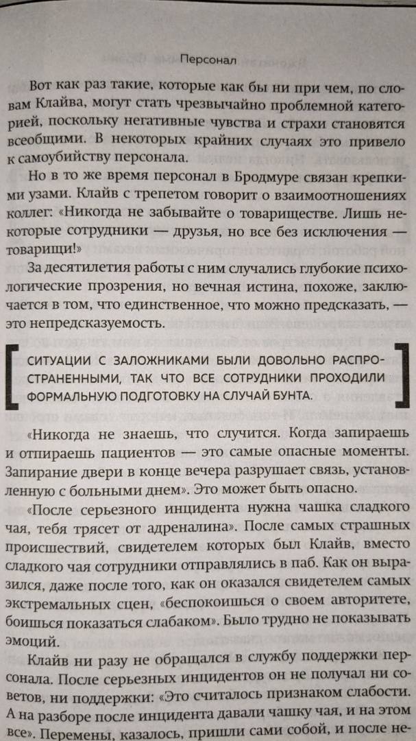 ОписаниеБродмур. За фасадом старинного викторианского здания скрывается одно из самых опасных мест в Великобритании - больница строгого режима для психически больных преступников. В Бродмуре, существующем уже более 150 лет, содержатся люди, преступления которых в свое время шокировали мир своей жестокостью. Среди его печально известных обитателей были: "Стоквеллский душитель" Кеннет Эрскин, "Йоркширский потрошитель" Питер Сатклифф, Каннибал Питер Брайан, Предводитель лондонской банды Рорри Крэй И другие серийные убийцы, грабители, насильники. Авторы этой книги, тележурналист Джонатан Леви и историк-искусствовед Эмма Френч, провели колоссальную работу с архивами Бродмура в попытках лучше узнать историю этого мрачного места. Около 10 лет они общались с его пациентами и персоналом, изучая внутреннюю жизнь больницы, окруженную огромным количеством мифов и легенд. Могут ли лучшие врачи проникнуть в темные воды сознания своих пациентов, постичь их мозг и в итоге вылечить их? По какой причине преступники, находящиеся в Бродмуре, совершали те страшные поступки, которые в итоге привели их сюда? Как складываются взаимоотношения между пациентами и медперсоналом? Это уникальная книга о больнице, больше похожей на город-призрак, ее пугающих обитателях и преданных работниках, ежедневно находящихся бок о бок с самыми опасными людьми Великобритании. "Книга основана на наблюдениях и личных беседах с теми, кто жил в стенах этой больницы. Пугающее и завораживающее путешествие по старейшей психиатрической клинике строгого режима в Великобритании. Убийцы, каннибалы, серийные насильники, отравители и террористы. Их разум покрыт тьмой и скрывает в себе страшные тайны. Шокирующую правду о них и об их жизни в "Бродмуре" расскажет эта книга". - АЛЕНА ЛЕНКОВСКАЯ, уголовный юрист, юридический психолог, автор блога @alenushka.lenСвернутьБродмур. За фасадом старинного викторианского здания скрывается одно из самых опасных мест в Великобритании - больница строгого режима для психически больных преступников. В Бродмуре, существующем уже более 150 лет, содержатся люди, преступления которых в свое время шокировали мир своей жестокостью. Среди его печально известных обитателей были: "Стоквеллский душитель" Кеннет Эрскин, "Йоркширский потрошитель" Питер Сатклифф, Каннибал Питер Брайан, Предводитель лондонской банды Рорри Крэй И другие серийные убийцы, грабители, насильники. Авторы этой книги, тележурналист Джонатан Леви и историк-искусствовед Эмма Френч, провели колоссальную работу с архивами Бродмура в попытках лучше узнать историю этого мрачного места. Около 10 лет они общались с его пациентами и персоналом, изучая внутреннюю жизнь больницы, окруженную огромным количеством мифов и легенд. Могут ли лучшие врачи проникнуть в темные воды сознания своих пациентов, постичь их мозг и в итоге вылечить их? По какой причине преступники, находящиеся в Бродмуре, совершали те страшные поступки, которые в итоге привели их сюда? Как складываются взаимоотношения между пациентами и медперсоналом? Это уникальная книга о больнице, больше похожей на город-призрак, ее пугающих обитателях и преданных работниках, ежедневно находящихся бок о бок с самыми опасными людьми Великобритании. "Книга основана на наблюдениях и личных беседах с теми, кто жил в стенах этой больницы. Пуг