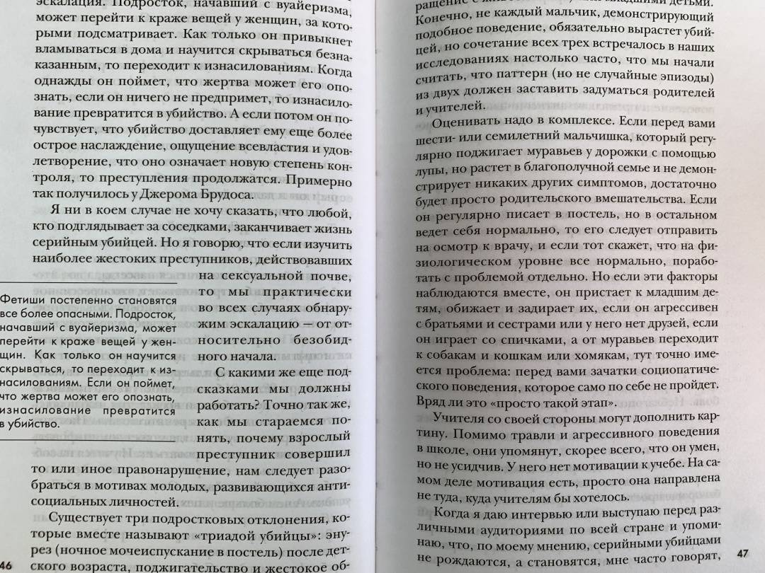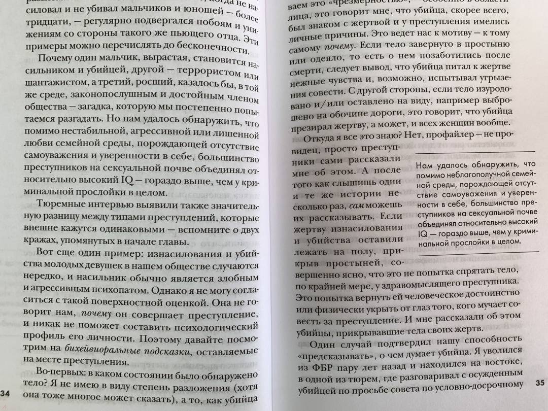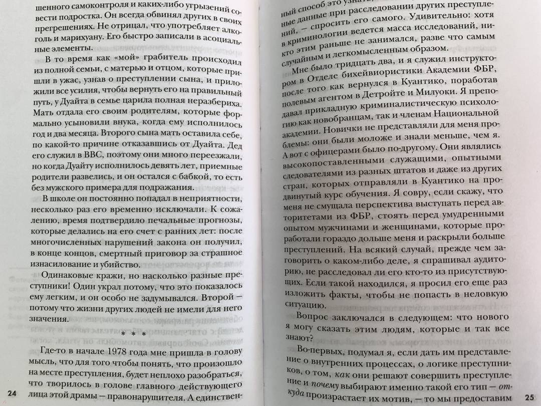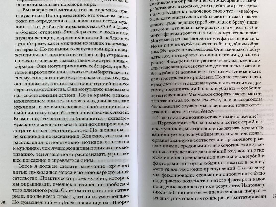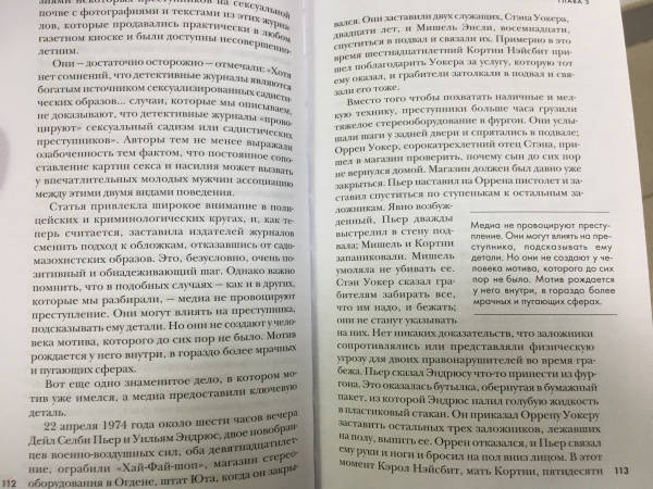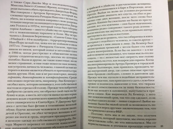 ОписаниеЛегендарный профайлер ФБР и прототип Джека Кроуфорда из знаменитого "Молчания ягнят" Джон Дуглас исследует исток всех преступлений: мотив убийцы. Почему преступник убивает? Какие мотивы им движут? Обида? Месть? Вожделение? Жажда признания и славы? Один из родоначальников криминального профайлинга, знаменитый спецагент ФБР Джон Дуглас считает этот вопрос ключевым в понимании личности убийцы - и, соответственно, его поимке. Ответив на вопрос "Почему?", можно ответить на вопрос "Кто?" - и решить загадку.Исследуя разные мотивы и методы преступлений, Джон Дуглас рассказывает о самых распространенных типах серийных и массовых убийц. Он выделяет общие элементы в их биографиях и показывает, как эти знания могут применяться к другим видам преступлений. На примере захватывающих историй - дела Харви Ли Освальда, Унабомбера, убийство Джанни Версаче и многих других - легендарный "Охотник за разумом" погружает нас в разум насильников, отравителей, террористов, поджигателей и ассасинов. Он наглядно объясняет, почему люди идут на те или иные преступления, и учит распознавать потенциальных убийц, пока еще не стало слишком поздно…Джон Дуглас - блестящий специалист… Он знает о серийных убийцах больше, чем кто-либо еще во всем мире.Джонатан Демм, режиссер фильма "Молчание ягнят"Информативная и провокационная книга, от которой невозможно оторваться… Дуглас выступает за внимание и наблюдательность, исследует криминальную мотивацию и дает ценные уроки того, как быть начеку и уберечься от маловероятных, но все равно смертельных угроз современного общества. Kirkus ReviewПотрясающая книга, полностью обоснованная научно и изобилующая информацией… Поклонники детективов и триллеров, также те, кому интересно проникнуть в криминальный ум, найдут ее точные наблюдения и поразительные выводы идеальным чтением.Biography MagazineСвернутьЛегендарный профайлер ФБР и прототип Джека Кроуфорда из знаменитого "Молчания ягнят" Джон Дуглас исследует исток всех преступлений: мотив убийцы. Почему преступник убивает? Какие мотивы им движут? Обида? Месть? Вожделение? Жажда признания и славы? Один из родоначальников криминального профайлинга, знаменитый спецагент ФБР Джон Дуглас считает этот вопрос ключевым в понимании личности убийцы - и, соответственно, его поимке. Ответив на вопрос "Почему?", можно ответить на вопрос "Кто?" - и решить загадку.Исследуя разные мотивы и методы преступлений, Джон Дуглас рассказывает о самых распространенных типах серийных и массовых убийц. Он выделяет общие элементы в их биографиях и показывает, как эти знания могут применяться к другим видам преступлений. На примере захватывающих историй - дела Харви Ли Освальда, Унабомбера, убийство Джанни Версаче и многих других - легендарный "Охотник за разумом" погружает нас в разум насильников, отравителей, террористов, поджигателей и ассасинов. Он наглядно объясняет, почему люди идут на те или иные преступления, и учит распознавать потенциальных убийц, пока еще не стало слишком поздно…Джон Дуглас - блестящий специалист… Он знает о серийных убийцах больше, чем кто-либо еще во всем мире.Джонатан Демм, режиссер фильма "Молчание ягнят"Информативная и провокационная книга, от которой невозможно оторваться… Дуглас выступает за внимание и наблюдательность, исследует криминальную мотивацию и дает це