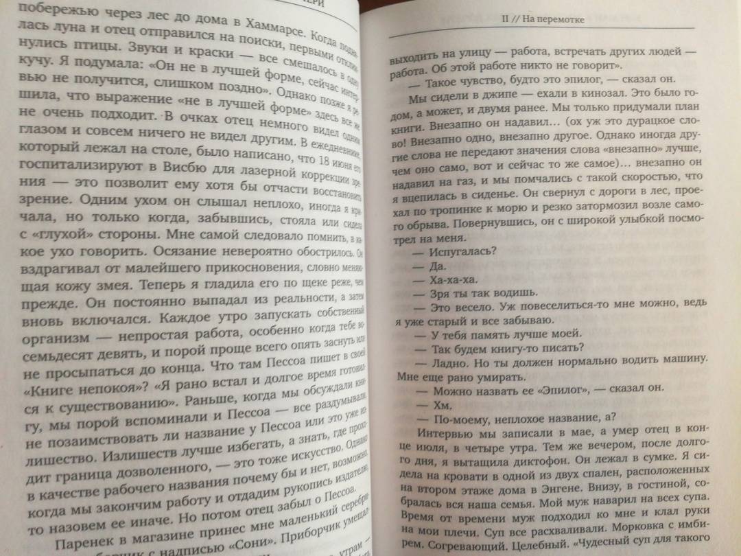 Это произведение - тонкое переплетение собственных воспоминаний Лин Ульман и ее бесед с Ингмаром Бергманом в последние годы его жизни. Воспоминания Бергмана о дорогих ему местах, о времени в уединении сплетаются с его размышлениями о старении и старости. Беседы с отцом вызывают у Лин Ульман воспоминания о своем детстве, о матери, о поездках к отцу на Форё, о встречах с ее сводными сестрами и братьями и о собственной юности.