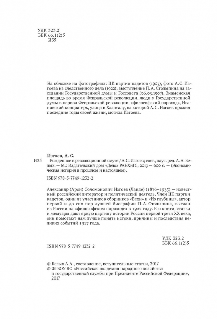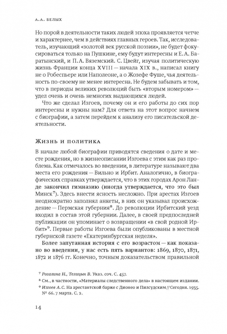 ОписаниеАлександр (Арон) Соломонович Изгоев (Ланде) (1876-1935) - известный российский литератор и политический деятель. Член ЦК партии кадетов, один из участников сборников "Вехи" и "Из глубины", автор первой и до сих пор лучшей биографии П. А. Столыпина, выслан из России на "философском пароходе" в 1922 году. Его книги, статьи и мемуары дают яркую картину истории России первой трети XX века, они помогают нам лучше понять.Александр (Арон) Соломонович Изгоев (Ланде) (1876-1935) - известный российский литератор и политический деятель. Член ЦК партии кадетов, один из участников сборников "Вехи" и "Из глубины", автор первой и до сих пор лучшей биографии П. А. Столыпина, выслан из России на "философском пароходе" в 1922 году. Его книги, статьи и мемуары дают яркую картину истории России первой трети XX века, они помогают нам лучше понять.