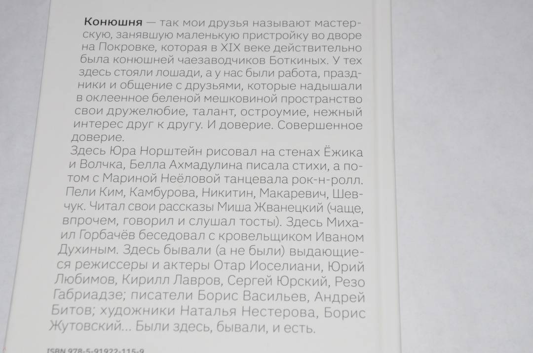 ОписаниеКонюшня Юрия Роста — место знаковое. Сюда, в свою мастерскую, Юрий Михайлович приглашал своих друзей и за чашкой чая или рюмкой грибной водки беседовал с ними на самые важные и сокровенные темы. Так родился цикл телепередач «Конюшня Роста», на основе которого создана эта книга. Гости Конюшни — выдающиеся личности, люди с яркой индивидуальностью и интересной судьбой. Среди них Белла Ахмадулина, Татьяна Тарасова, Олег Табаков, Марина Неёлова... Предлагая «сообразить на троих», автор дает читателю возможность стать не просто сторонним наблюдателем, а участником живой человеческой беседы.Конюшня Юрия Роста — место знаковое. Сюда, в свою мастерскую, Юрий Михайлович приглашал своих друзей и за чашкой чая или рюмкой грибной водки беседовал с ними на самые важные и сокровенные темы. Так родился цикл телепередач «Конюшня Роста», на основе которого создана эта книга. Гости Конюшни — выдающиеся личности, люди с яркой индивидуальностью и интересной судьбой. Среди них Белла Ахмадулина, Татьяна Тарасова, Олег Табаков, Марина Неёлова... Предлагая «сообразить на троих», автор дает читателю возможность стать не просто сторонним наблюдателем, а участником живой человеческой беседы.